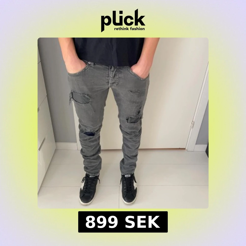 Tja! Säljer nu dessa feta dondup jeansen! Jeansen är i fint skick med en fin grå färg och feta slitningar! Storlek 33! Skriv vid bilder eller frågor