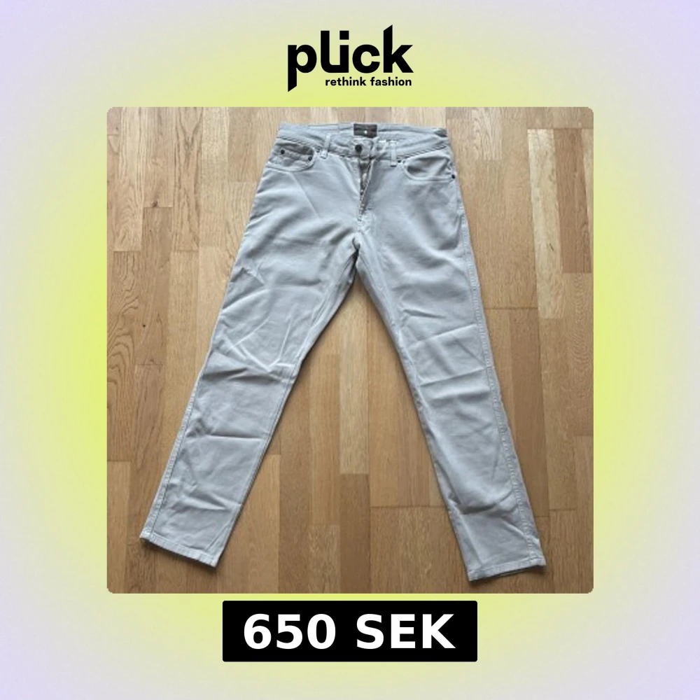 Ett par riktigt fräscha och helt oanvända beige/gråa chinos från Italienska märket Cavaliere med klassisk femficksdesign och raka ben i St W31 L30 för endast 650kr! Nypris 3700kr.