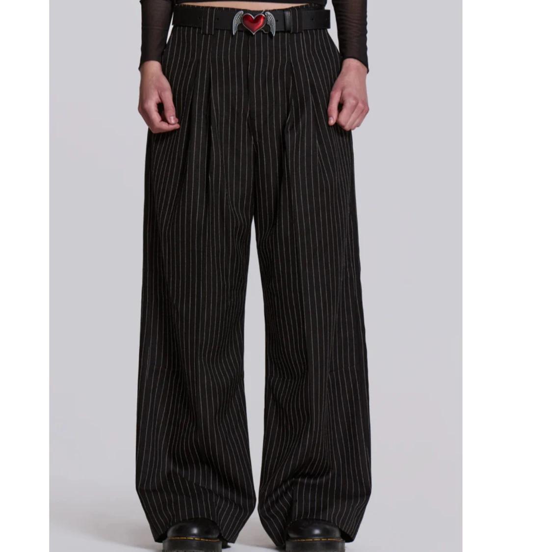 Jaded london kostymbyxor med en baggy passform. Plagget har alldrig blivigt andvänt och har till och med orginal lappen kvar. Säjler byxorna eftersom att jag fick byxorna som en julkapp men dem passar inte mig stolek är W26 Nypris är 1300kr. Om mer frågor så skriv