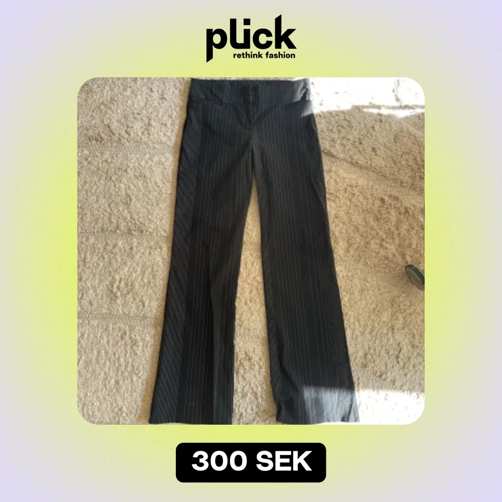 Lågmidjade byxor med unika ränder. Mått: 37 cm midja, 99 cm ben, 80 cm innersöm. Fint skick! Pris går att diskuteras.