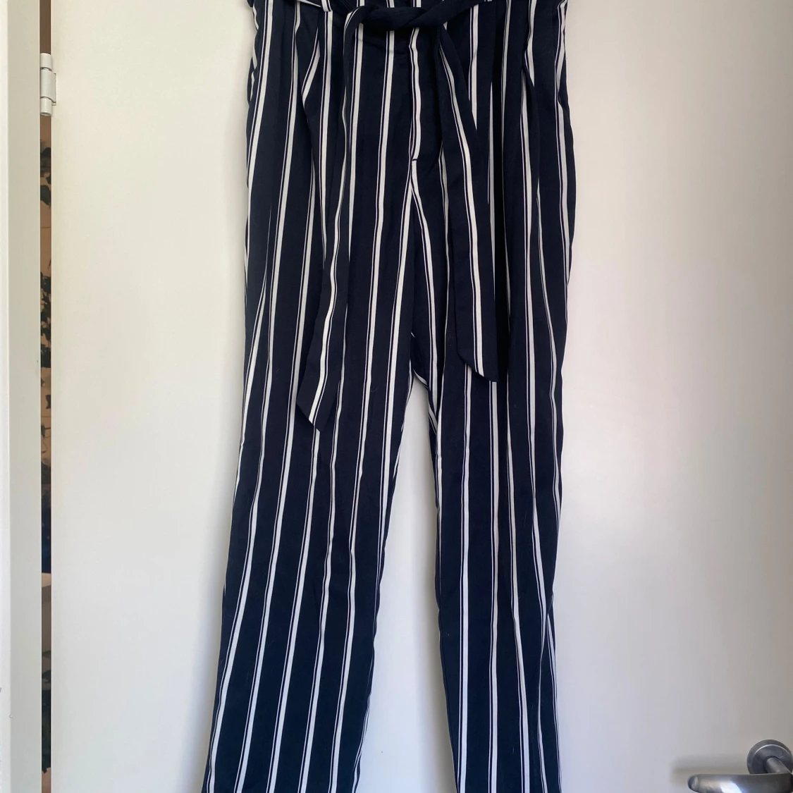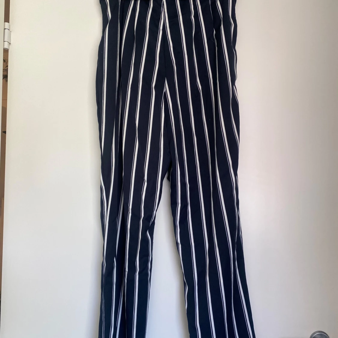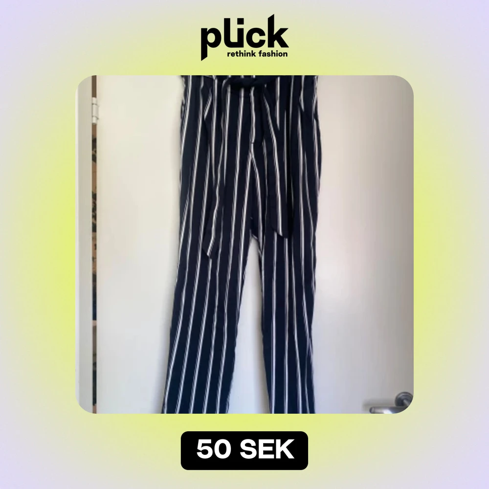 Blå-vitrandiga byxor från HM. Storlek 38 i toppskick. Kan mötas upp i Örebro eller skicka mot fraktkostnad.