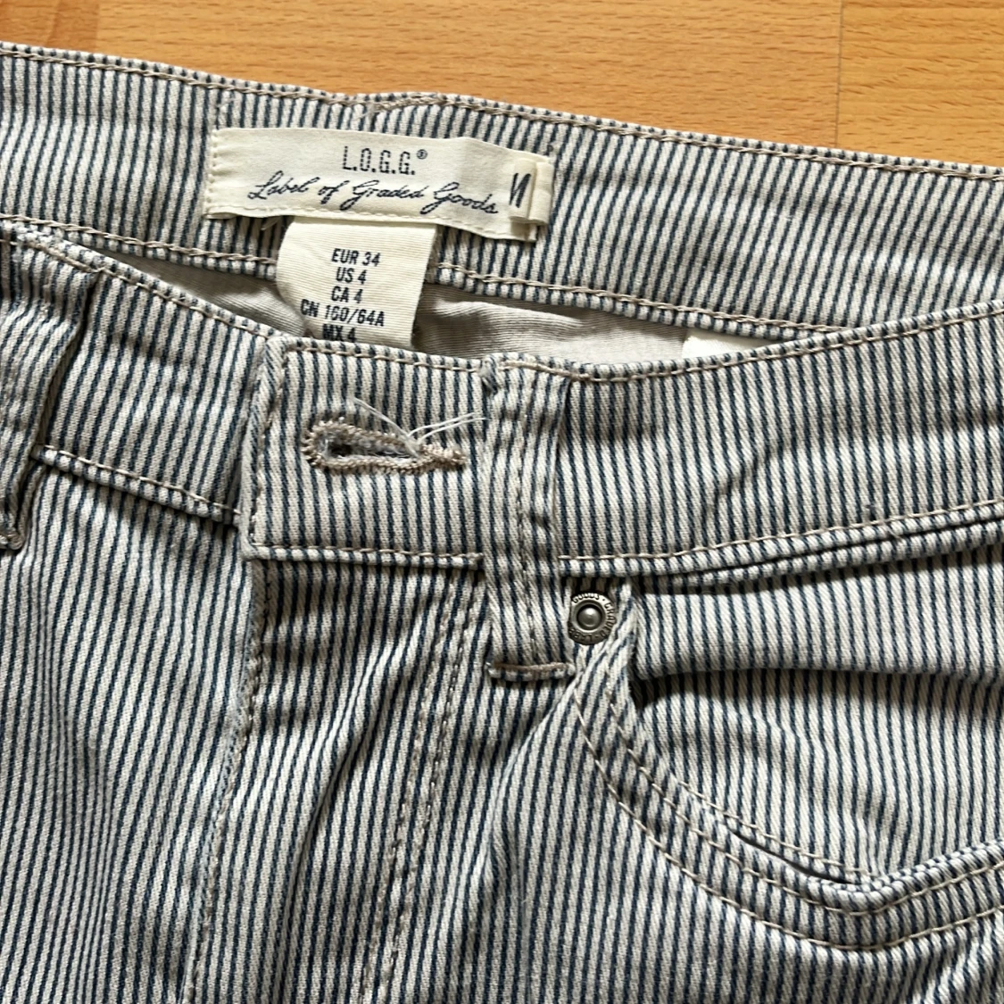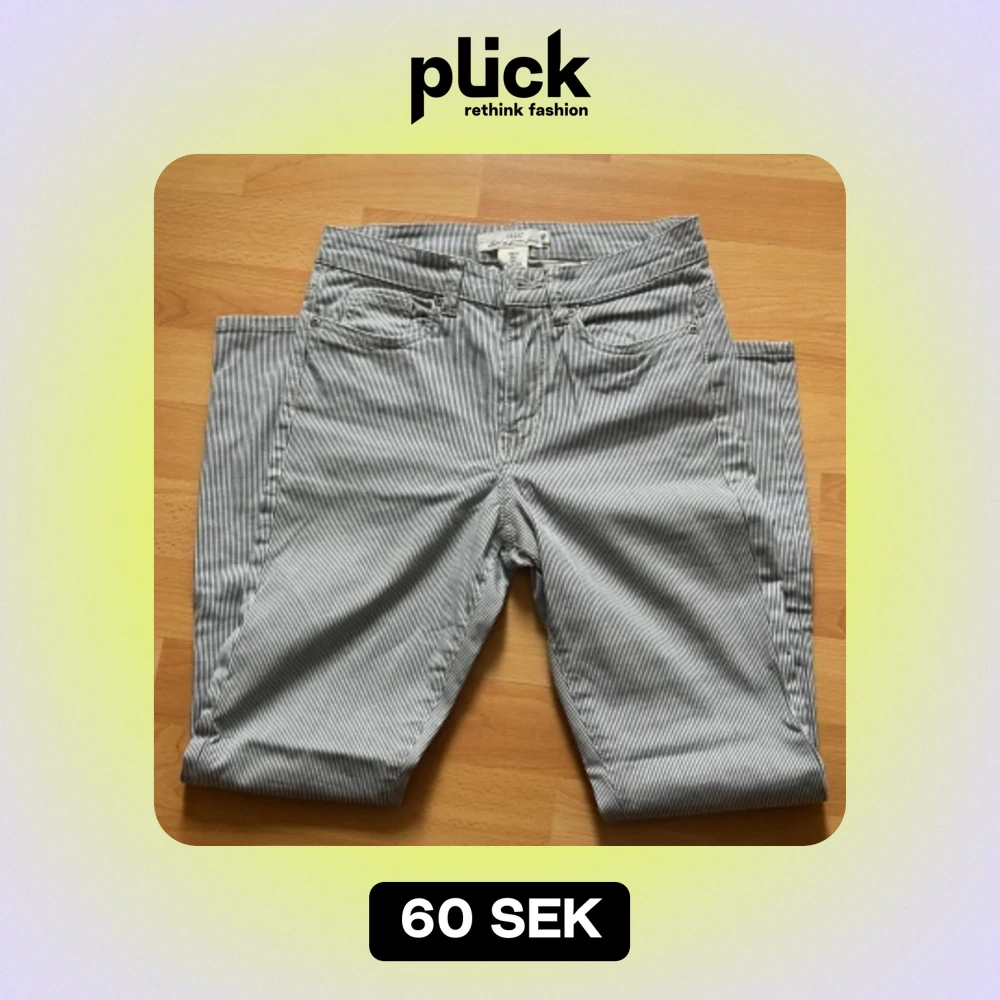 gulliga randiga/striped jeans från h&m storlek 34,, knappt använda passar nog skinny