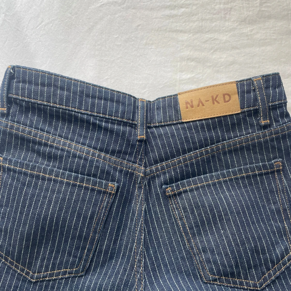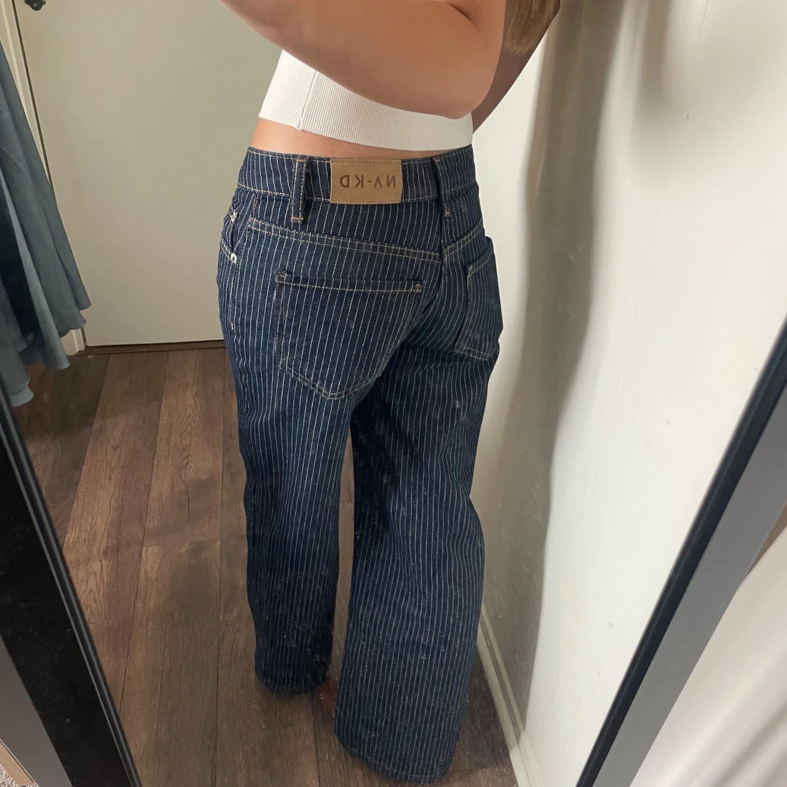 Så snygga jeans från NA-KD med ränder. Använda en gång, storlek 32 men är lite stora i storleken så sitter mer som en 34💞Nypris 700kr