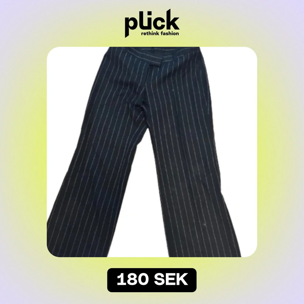 Randiga, ganska lågmidjade kostymbyxor köpta på humana. Säljer pga försmå för mig. Lite för korta och jag är ca 176 cm. Bra skick!