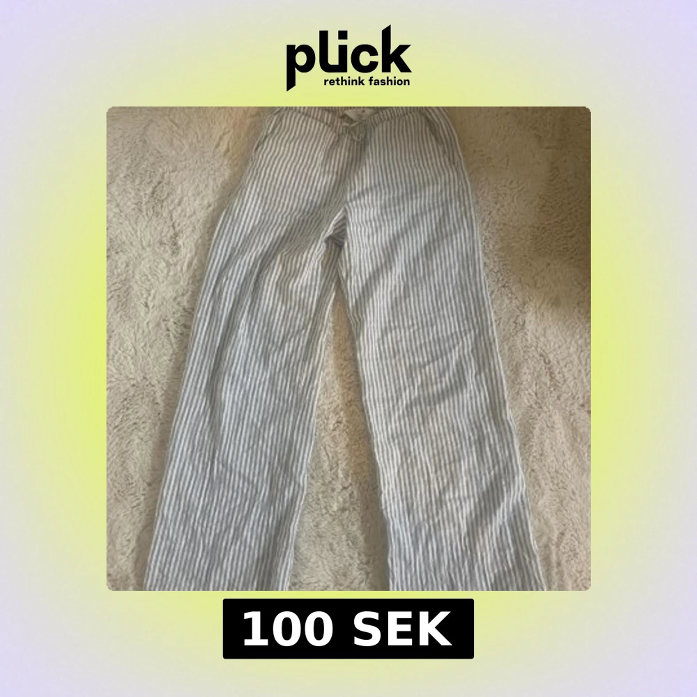 Snygga linnebyxor med blå och vita ränder, perfekt för en chill och avslappnad stil. Byxorna har rak passform och snörning i midjan för extra komfort. Luftigt material som passar bra när det är varmt ute.