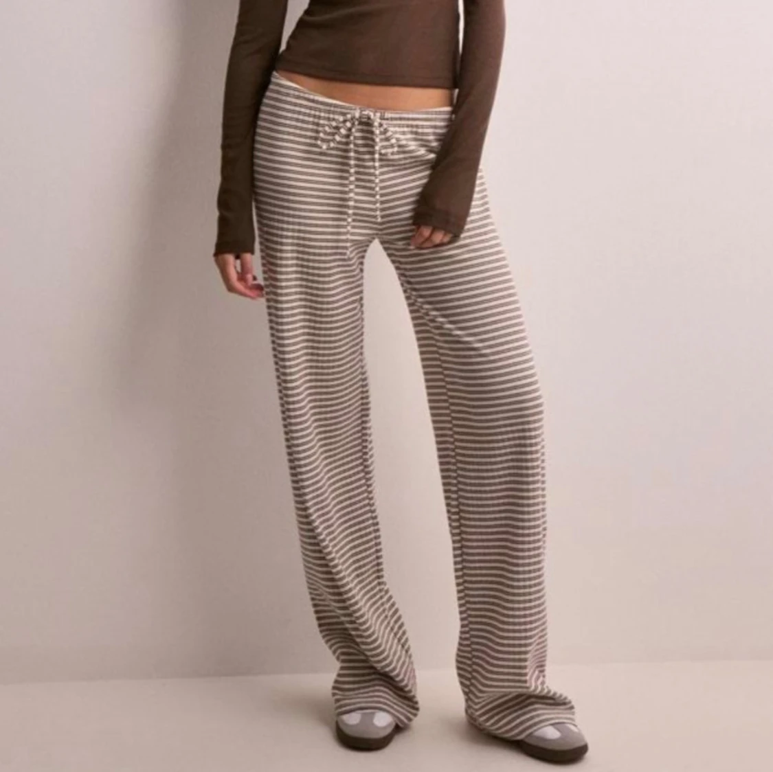 Säljer dessa randiga mjukisbyxor från Nelly. Använd fåtal gånger och är supersköna! Är i vanliga fall S så skulle säga att dessa är lite stora i storlek eller väldigt stretchiga:)