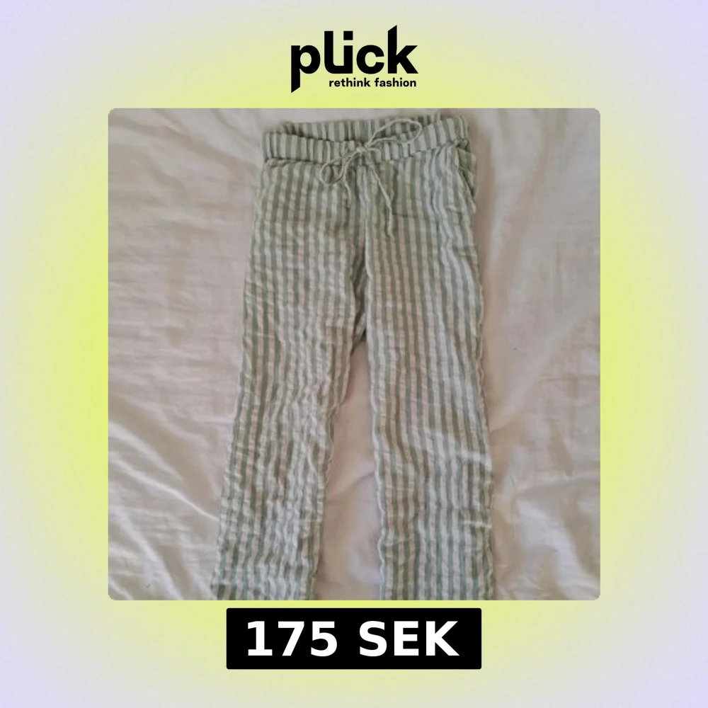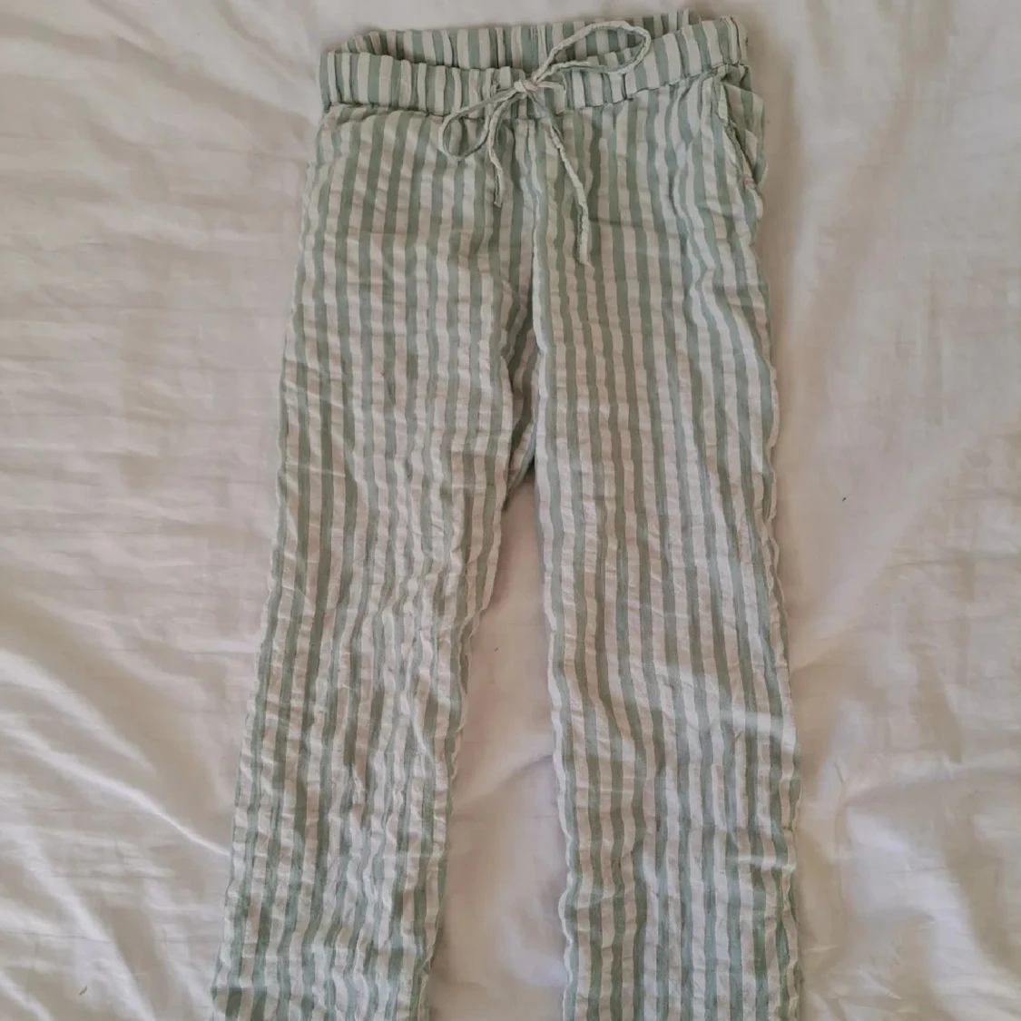 Snygga och bekväma pyjamasbyxor, de har raka, luftiga ben och en söt mintgrön färg i ränderna samt vit. De har fickor och är i jättebra skick! Nypris 399 kr