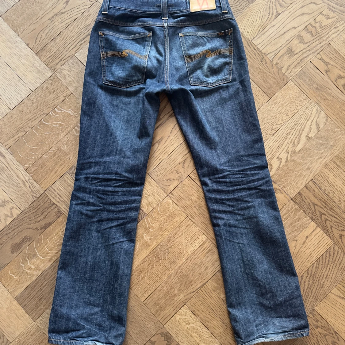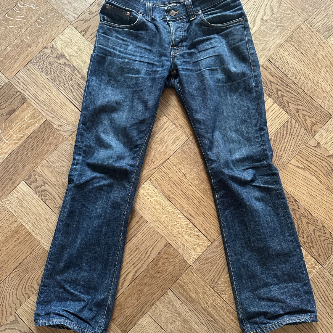 Dessa jeansen är i storlek 31/32 och är råa, vilket innebär att washen kommer förändras på dessa ju mer du använder de, de är en modell som heter bootcut ola som inte görs längre därav priset.