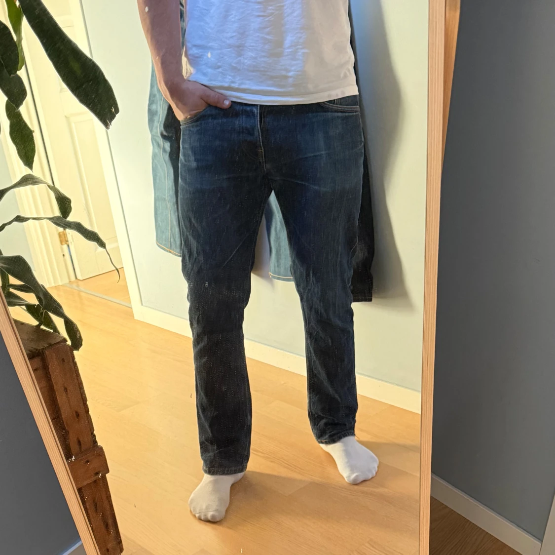 Tjena! Säljer dessa riktigt snygga Raw denim nudies i modellen AvrageJoe, jeansen är i fint skick och jag är 186cm lång, hör av dig vid funderingar!🙌