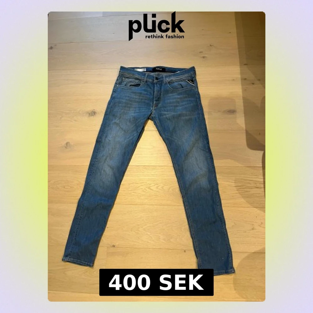 Fräscha Replay-byxor i storlek 31/32! Detta är ett par Replay-jeans som är i riktigt fint skick. Byxorna är endast använda sparsamt och är fria från slitage, fläckar och hål. Passformen är bekväm och modern – perfekta om du vill ha kvalitetsjeans från Replay utan att köpa helt nya.
