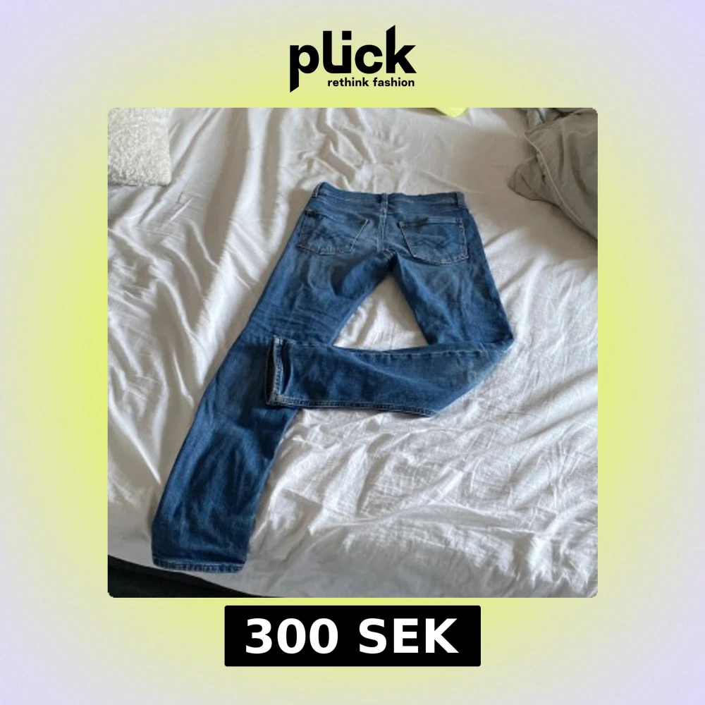 Säljer ett par klassiska blå jeansbyxor från Replay med raka ben och snygga detaljer på bakfickorna. Byxorna har slim passform och är perfekta för dig som gillar en tidlös jeansstil. Märket Replay syns tydligt på insidan. Storleken är 12 år men går att använda ända tills 160 nypris ca 800
