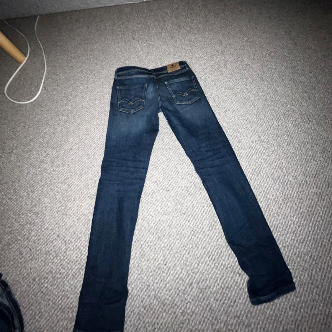 Säljer ett par mörkblå jeans från Replay i skinny fit. Klassisk femficksmodell med snygga kontrastsömmar och normalhög midja. Jeansen är i stretchigt denim och har en stilren look som passar till det mesta. Kan sänka pris om de behövs.