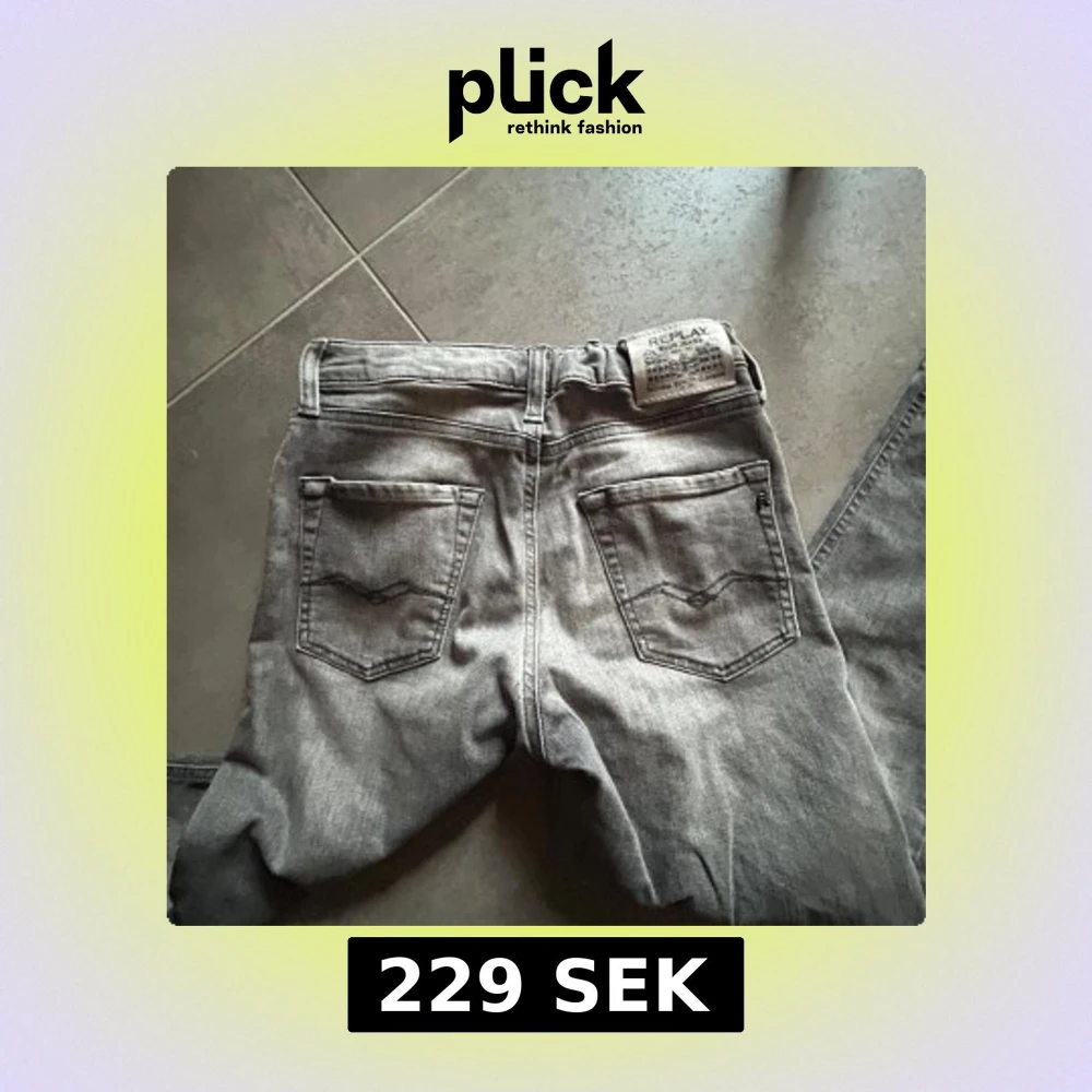 Säljer ett par grå jeansbyxor från Replay, modell THAD. Klassisk femficksdesign med raka ben och normal passform. Snyggt Replay-märke bak i midjan och diskreta sömmar på bakfickorna. Perfekta till vardags för en stilren look.