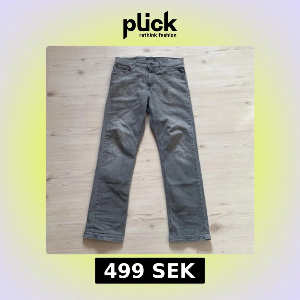 Snygga grå jeans från Replay i klassisk straight fit. Jeansen har fem fickor, bälteshällor och Replay-logga på bakfickan samt läderpatch bak. Tillverkade i mjukt jeanstyg som är skönt att bära hela dagen.