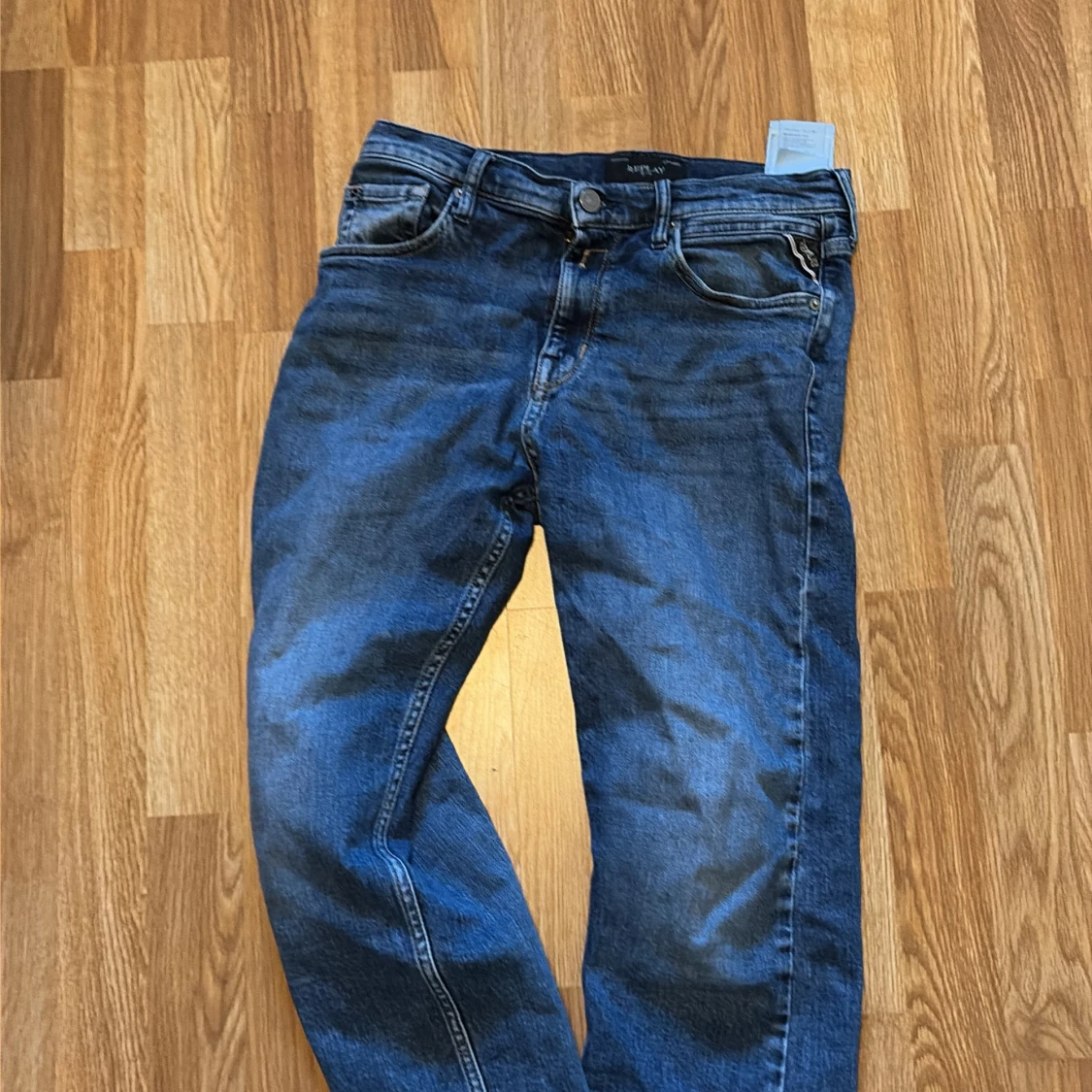 Snygga blå jeans från Replay, modell Thad. Klassisk femficksdesign med raka ben och normal passform. Jeansen har tydliga kontrastsömmar och Replay-logga på bakfickan samt läderpatch i midjan. Perfekta för dig som gillar stilrena och tidlösa jeans.