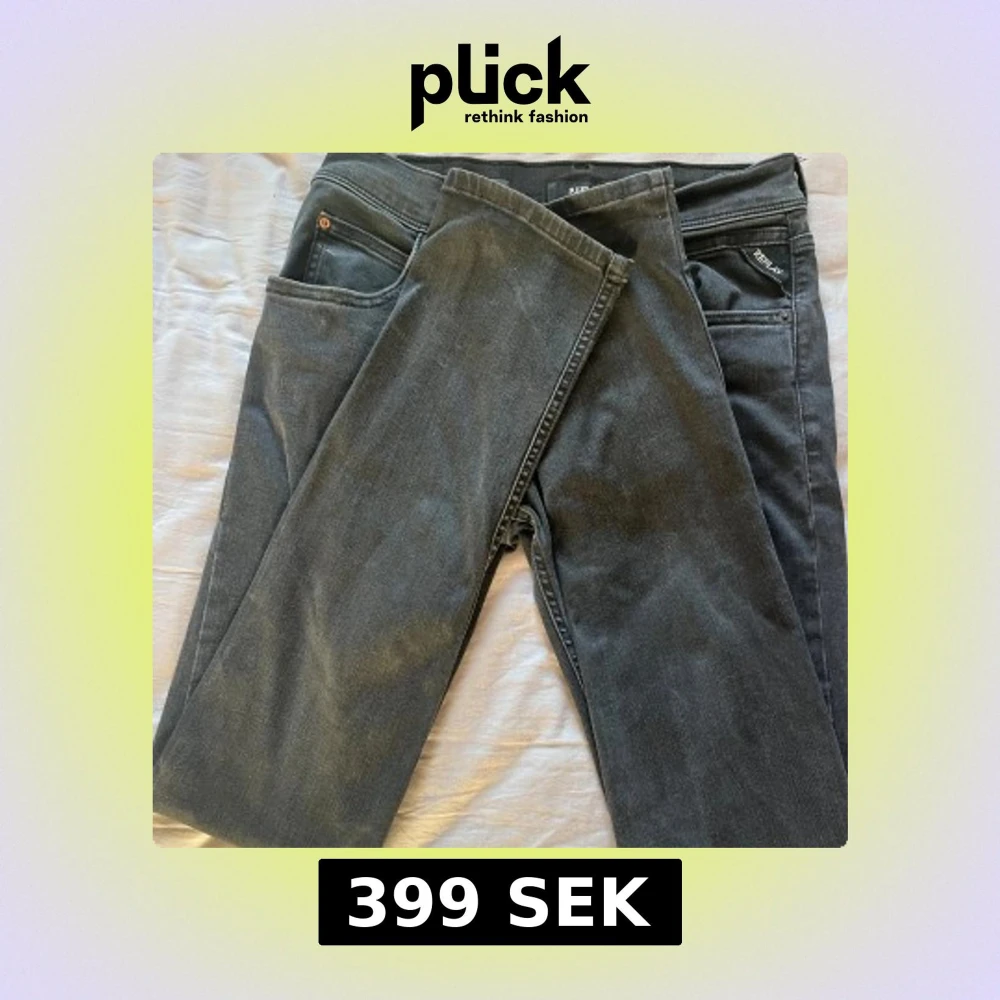 Säljer ett par mörkgråa Replay Hyperflex jeans, aldrig använda. Jeansen är i stretchigt material för extra komfort och har en skinny passform. Snygga svarta sömmar och diskret Replay-logga på bakfickan. Perfekta för dig som gillar stilrena och bekväma jeans. Storlek: 158