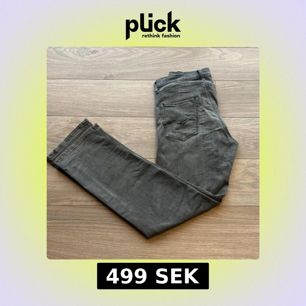 Säljer ett par grå jeansbyxor från Replay, modell Thad. Byxorna har klassisk femficksdesign, raka ben och normal passform. Snygga detaljer med Replay-logga vid fickan och diskret broderi på bakfickan.