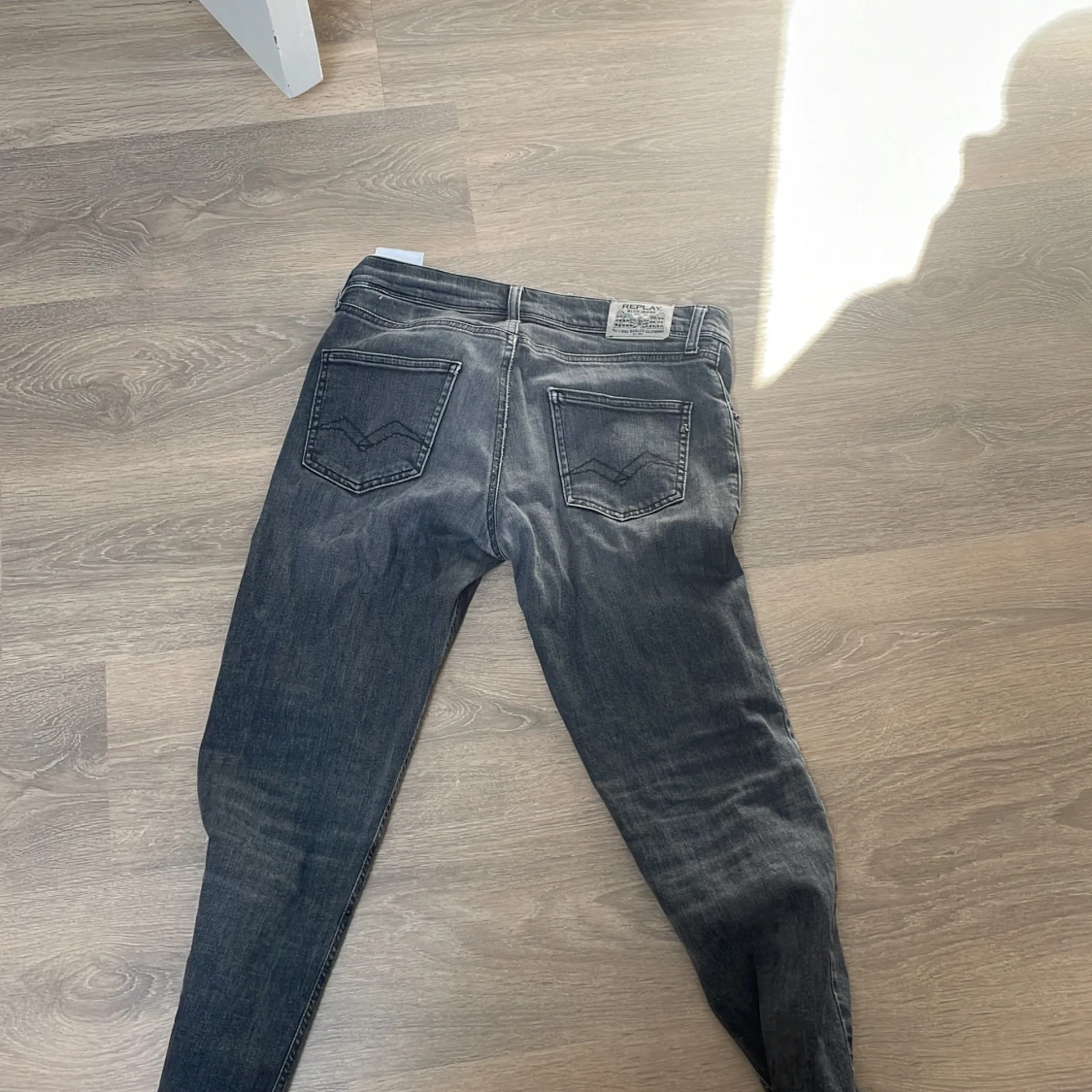 Säljer ett par svarta Replay jeans med snygg tvätt och klassiska bakfickor med broderad detalj. Jeansen har raka ben och normal passform, tillverkade i mjukt jeanstyg som sitter skönt hela dagen. Perfekta för dig som gillar stilrena och tidlösa jeans.