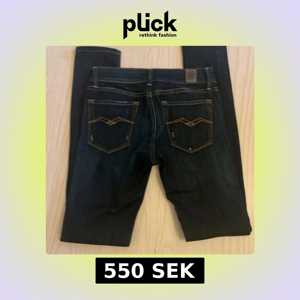 Snygga mörkblå skinny jeans från Replay med klassiska kontrastsömmar och coola detaljer på bakfickorna. Jeansen har normal midja och är tillverkade i stretchigt denim för en tight passform. Perfekta för dig som gillar en slimmad siluett. 25/32 helt nya