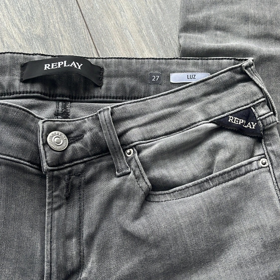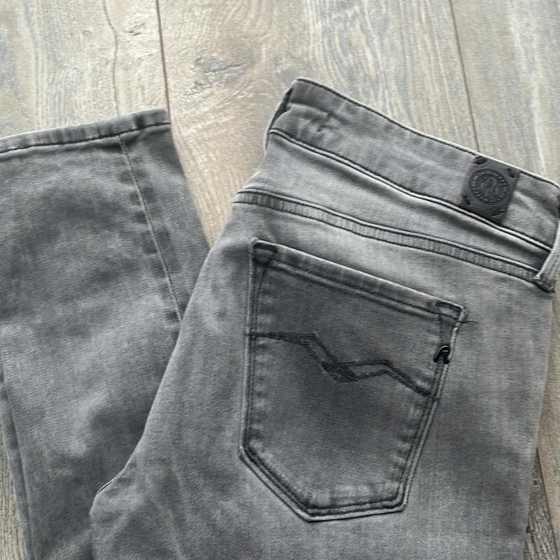 Snygga grå jeans från Replay med en stilren design. De har en klassisk femficksmodell och knappgylf. Perfekta för en avslappnad look. Mycket fin grå färg nu till våren!