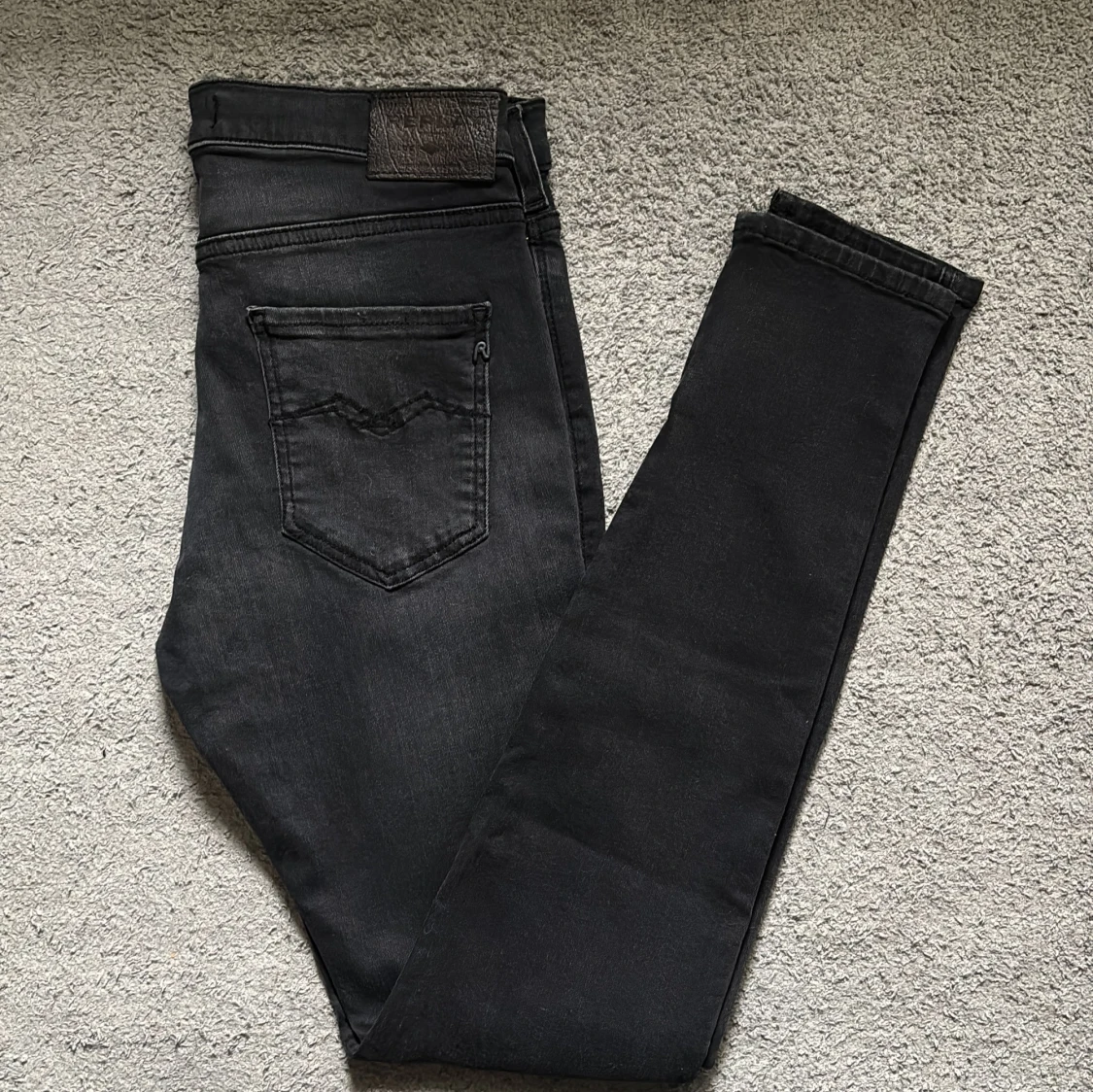 Snygga svarta jeans från Replay, modell Stella, i stretchigt material. Smal passform med dragkedjor vid bensluten och klassiska bakfickor. Perfekta för dig som gillar en stilren look med edge.