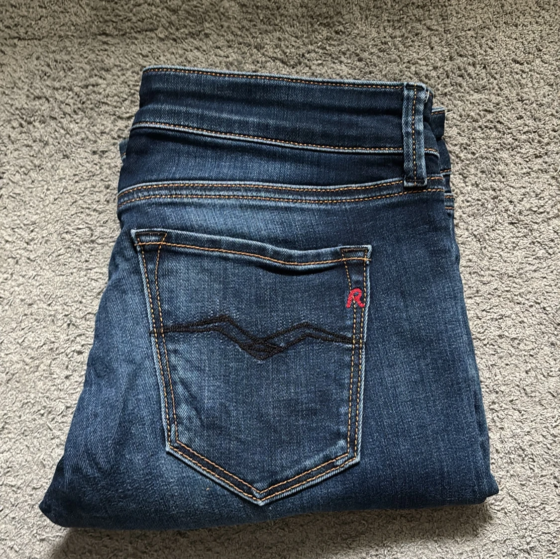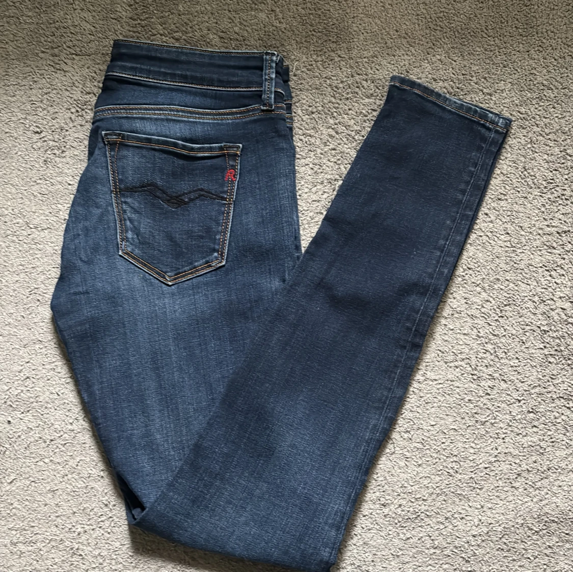 Snygga blå skinny jeans från Replay, modell Luz. Klassisk femficksdesign med kontrastsömmar och diskret Replay-logga på bakfickan. Jeansen har en smal passform och är tillverkade i stretchigt denim för en bekväm känsla.