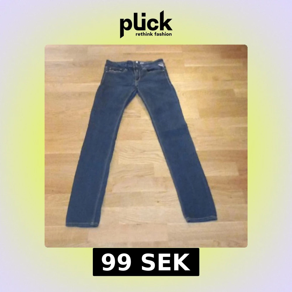 Säljer ett par snygga blå skinny jeans från Replay i storlek 27. De är i bra skick och har en klassisk femficksdesign med dragkedja och knapp. Perfekta för både vardag och fest! 💙