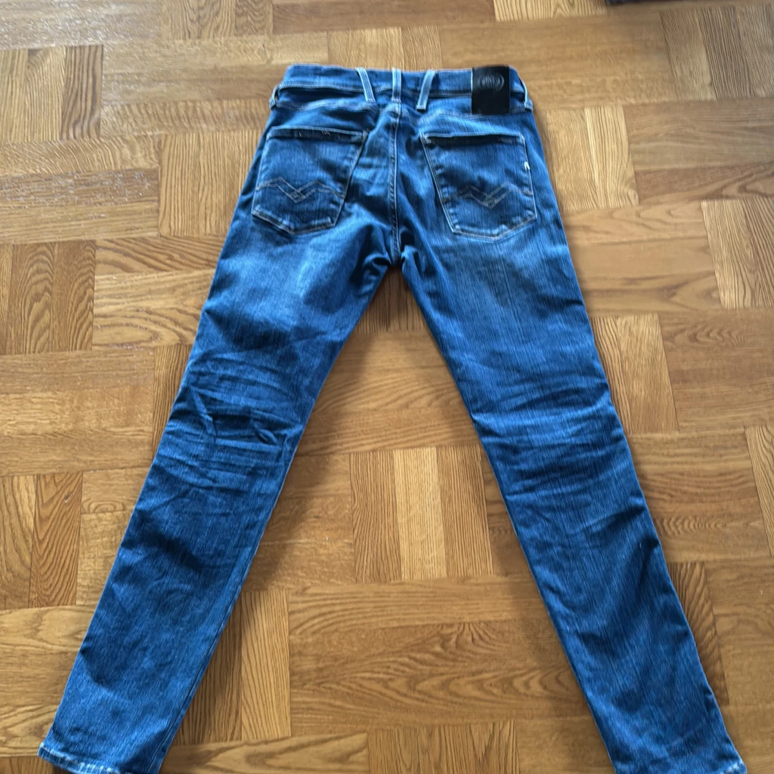 Snygga blå jeans från Replay i modellen Anbass. De har en klassisk femficksdesign och en bekväm passform. Perfekta för en avslappnad stil. Va inte rädd att ställa frågor😁