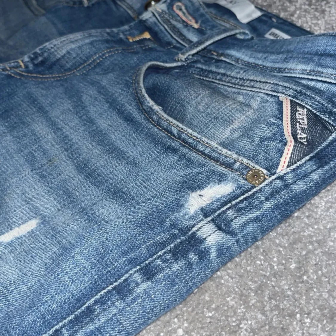 Säljer dessa feta replay anbass jeans! De är i toppskick. Nypris 1889. Storlek 28/30 och passar fint på någon runt 170 cm. Bara att höra av er om frågor eller liknande.