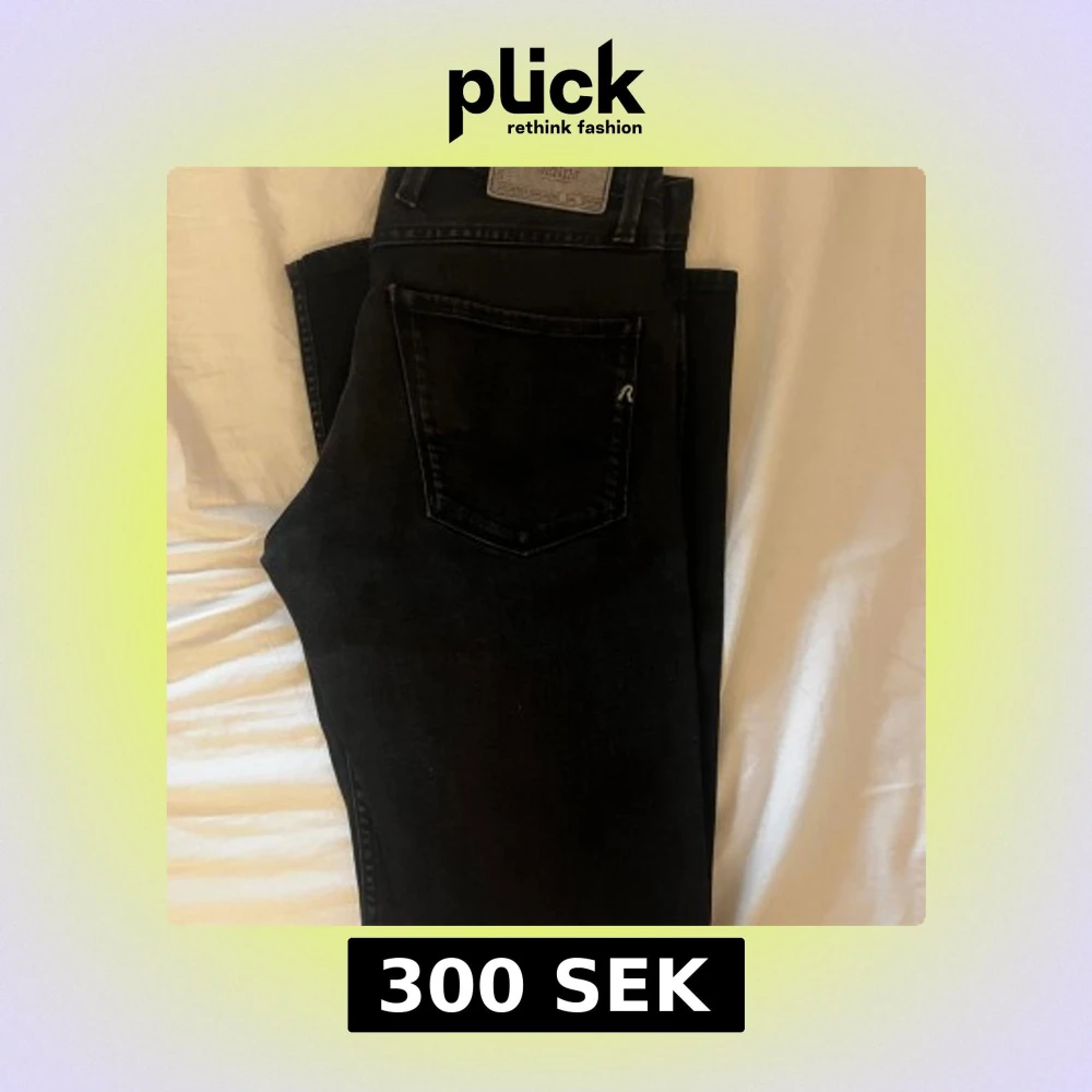Säljer ett par svarta jeans från Replay med klassisk femficksdesign och snygga detaljer vid fickorna. Jeansen har en rak passform och är tillverkade i mjukt denimtyg som sitter skönt hela dagen.