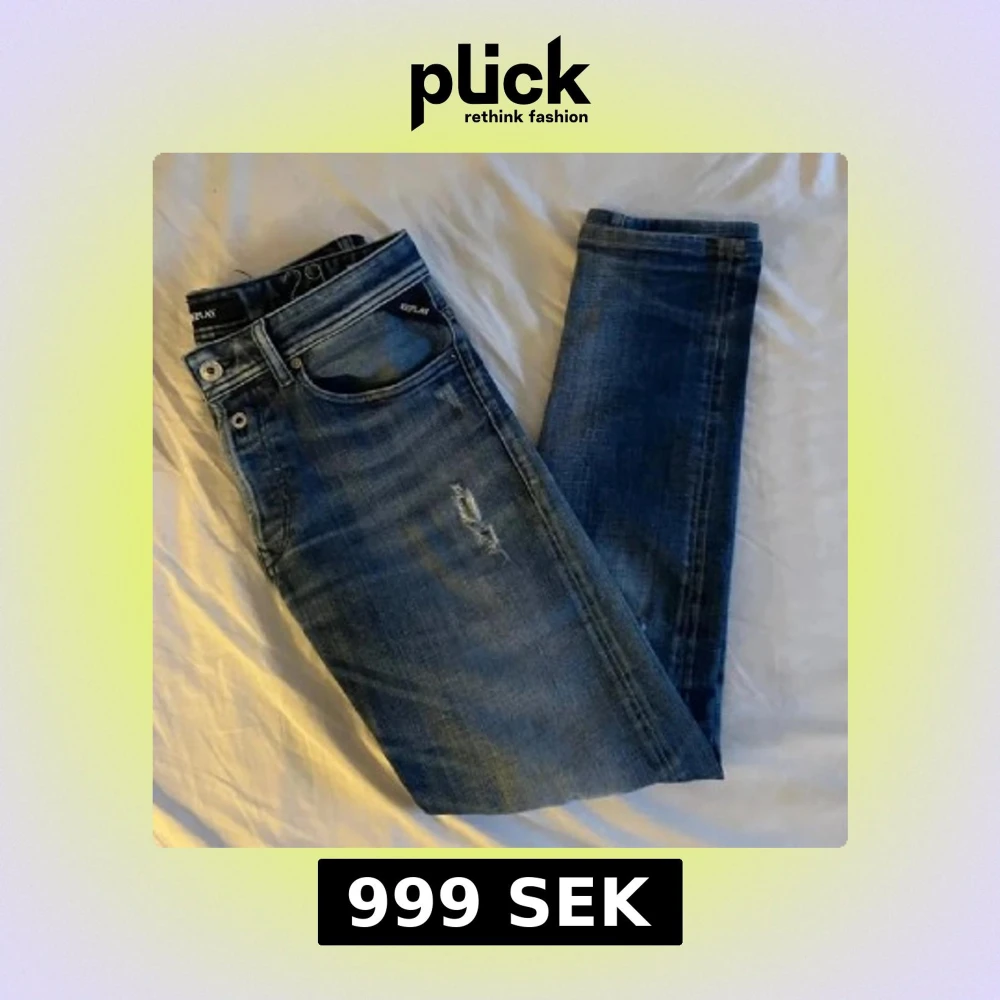 Säljer ett par snygga Replay jeans i blå med slitningar och lätt distressed detaljer. Slim fit-modell med klassiska fem fickor och dragkedja. Perfekt för dig som gillar en modern och stilren look.