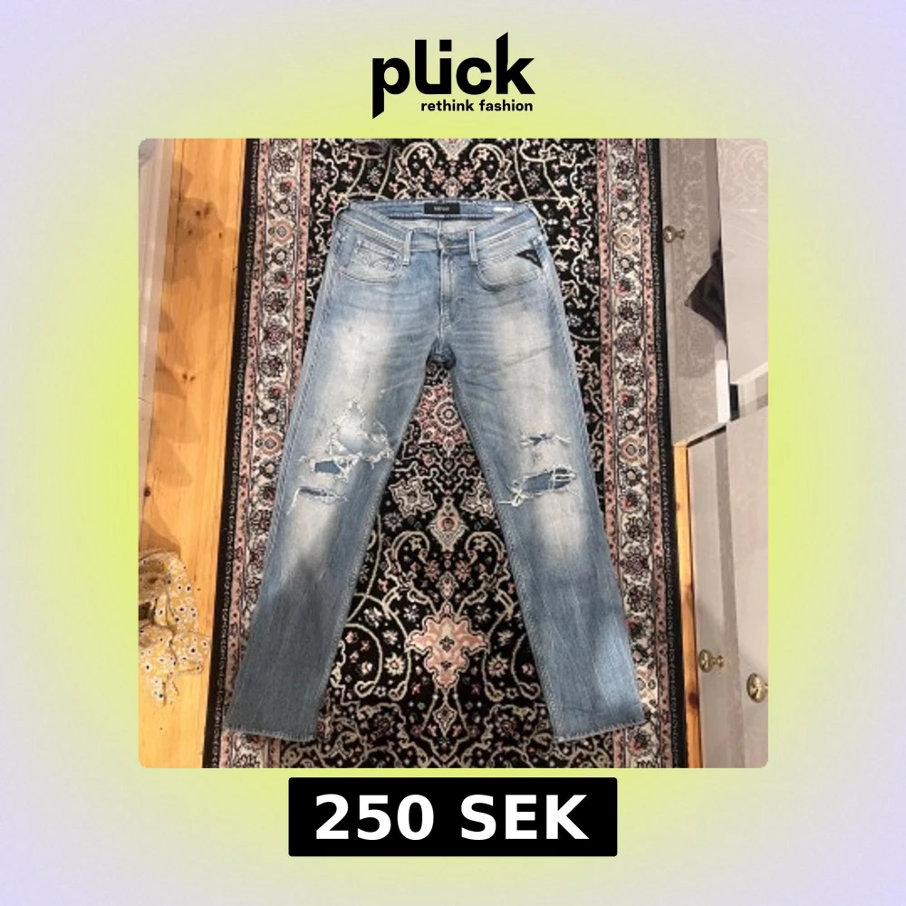 SäljerEtt par Replay Anbass jeans i storlek 28/32 letar nu efter en ny ägare. Dessa jeans har en snygg blå tvätt med trendiga slitningar som ger den där avslappnade, moderna looken utan att kännas för slitna. Modellen Anbass är en av Replay’s mest populära, just för att den kombinerar bekvämlighet med en smickrande passform. Slim fit som sitter bra längs benen, normal midja och en stil som funkar i alla sammanhang. Ett riktigt mångsidigt par jeans som kan bäras året runt.