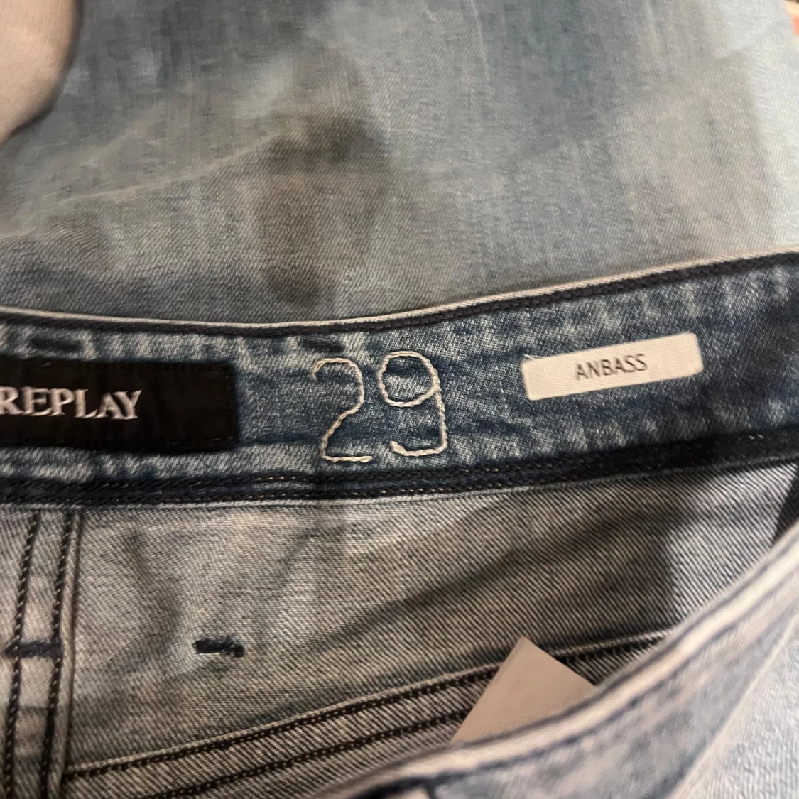 Replay Anbass Jeans 28/32, blå tvätt med slitningar