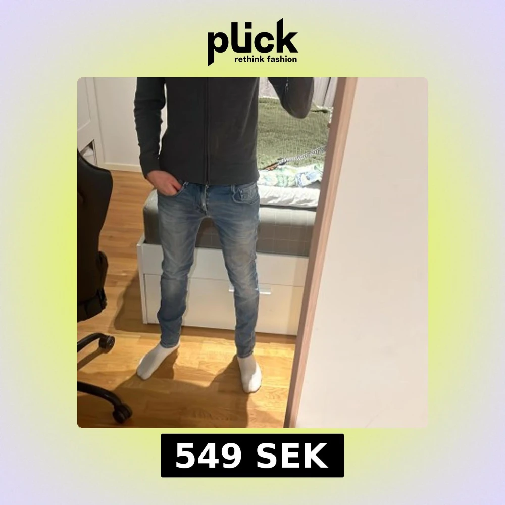 Säljer ett par Replay Anbass jeans i ljusblå tvätt med snyggt slitna detaljer. Jeansen har klassisk femficksdesign, dragkedjegylf och raka ben. Materialet är mjukt och stretchigt jeans, vilket gör dem riktigt sköna att bära. Perfekta för dig som gillar en modern och avslappnad look.