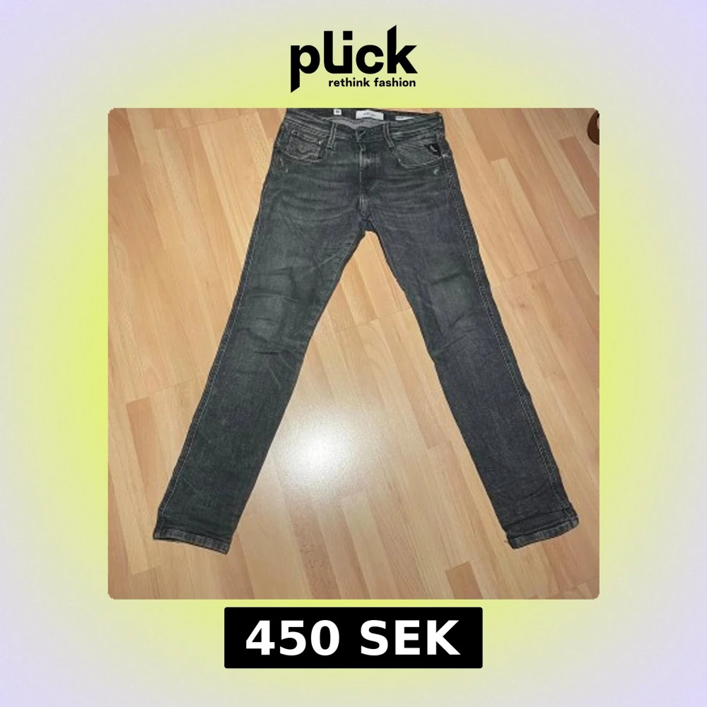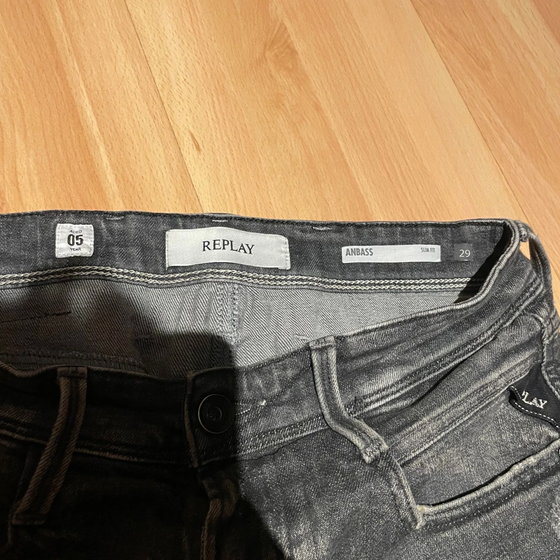 Snygga svarta Replay Anbass jeans i slim fit med klassisk femficksdesign. Jeansen har en något tvättad look och smal passform som sitter slim längs benen. Perfekta för dig som gillar en modern och stilren stil.