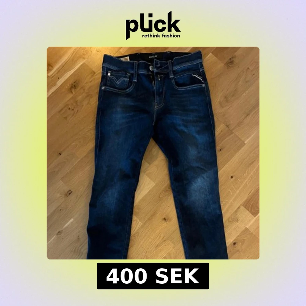 Mörkblå Replay Anbass jeans i slim fit med klassisk femficksdesign och snygga kontrastsömmar. Jeansen har en vit Replay-logga på bakfickan och är tillverkade i stretchigt denim för extra komfort. Perfekta för dig som gillar en smalare passform. Väldigt bra skick