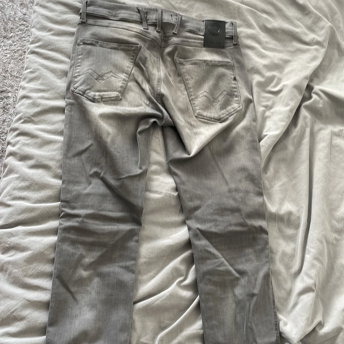 Snygga Replay Anbass Hyperflex jeans i grått med slim passform. Modellen har klassisk femficksdesign, svarta detaljer och stretchigt material som sitter skönt. Perfekt för dig som gillar stilrena och moderna jeans med smal siluett. Skriv gärna om du har frågor 🤗