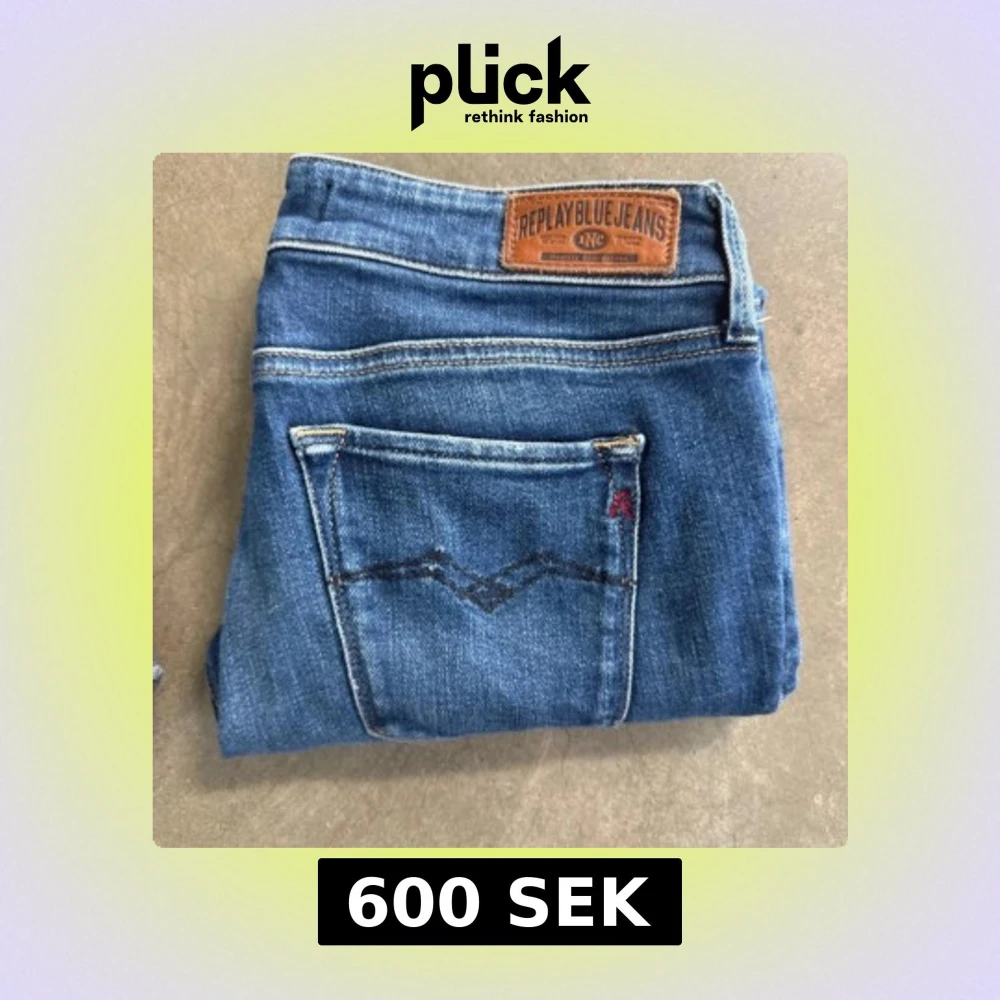Snygga blå jeans från Replay med klassisk femficksdesign och läderpatch bak i midjan. Jeansen har skinny passform, diskreta slitningar och tydliga sömmar. Perfekta för dig som gillar en smal siluett och vill ha ett par stilrena jeans i garderoben.