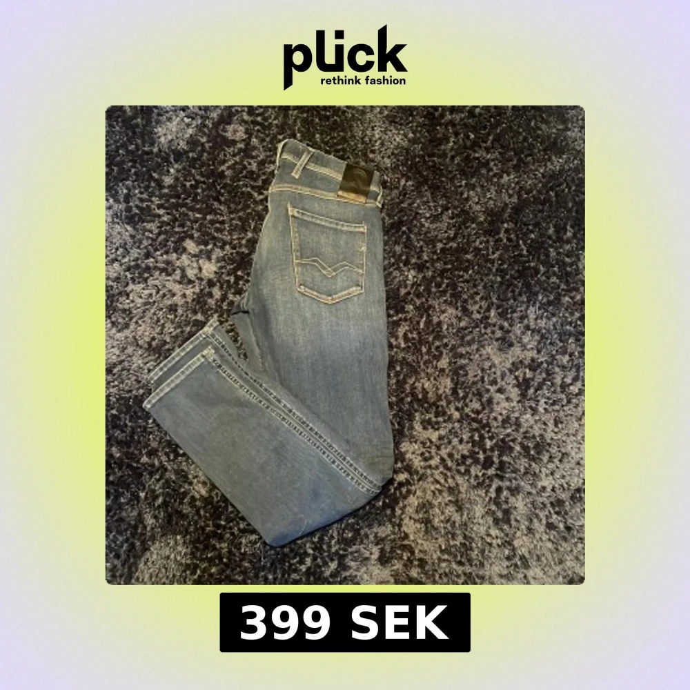 Säljer ett par snygga Replay Anbass jeans i blå tvätt med klassiska fem fickor och coola detaljer på bakfickorna. Jeansen har slim passform, normal midja och är tillverkade i stretchigt denim för skön komfort. Perfekt för dig som gillar stilrena och moderna jeans.