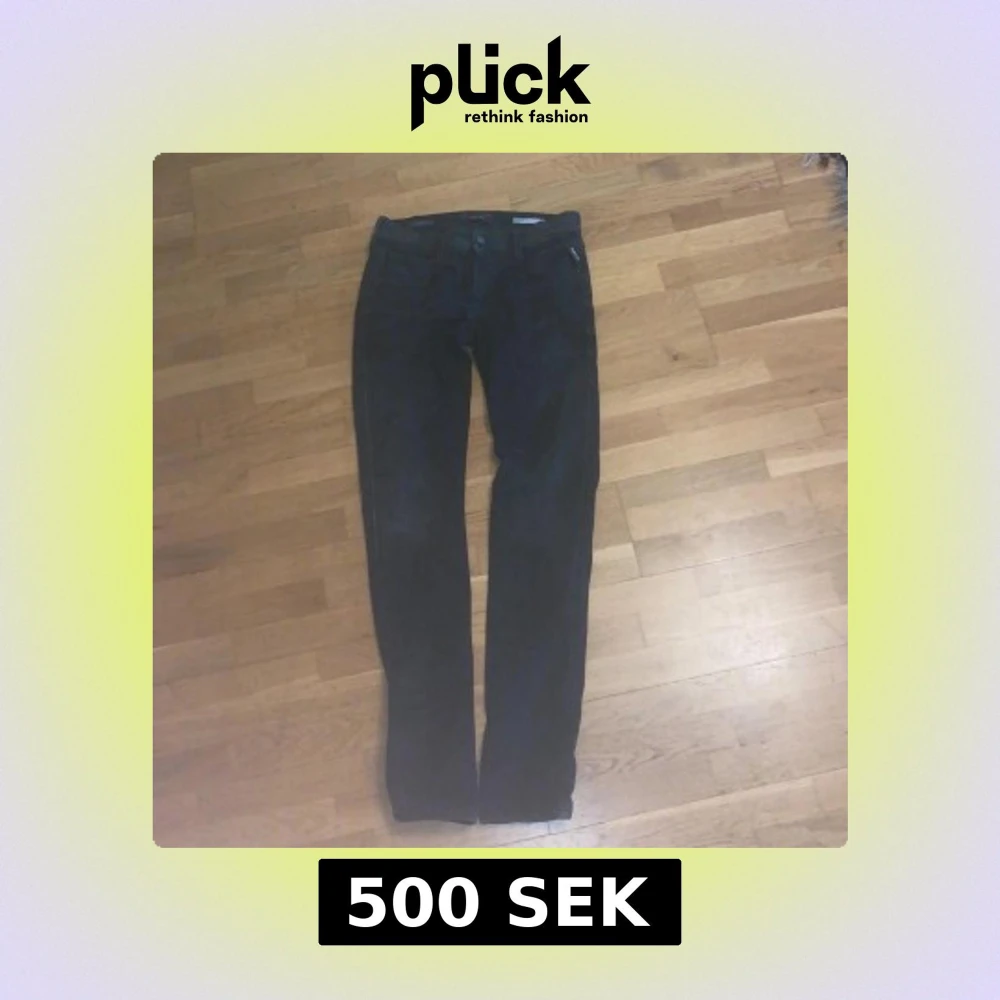 Säljer ett par svarta Replay Hyperflex Anbass jeans med klassisk femficksdesign och raka ben. Jeansen har normal passform och är tillverkade i stretchigt material för extra komfort. Perfekta för dig som vill ha stilrena och bekväma jeans.