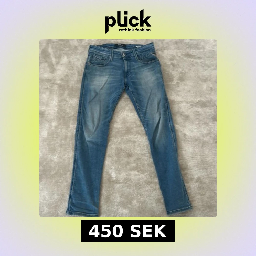 Säljer ett par Replay Anbass jeans i klassisk blå tvätt . Jeansen är slim fit och storlek 30/30 och sitter perfekt på mig som är 182
