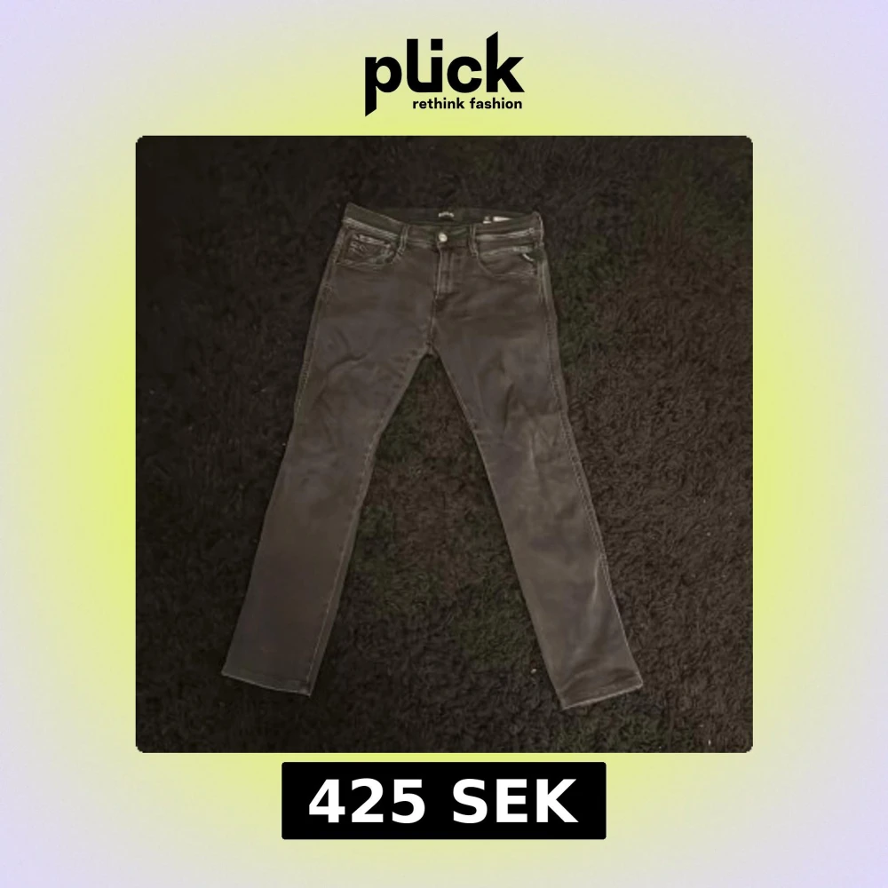 Svarta Replay Anbass jeans med klassisk femficksdesign och snygga detaljer på bakfickorna. Jeansen har en slim passform och är tillverkade i stretchigt jeansmaterial för extra komfort. Perfekta för dig som gillar stilrena och moderna jeans.