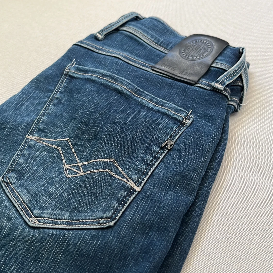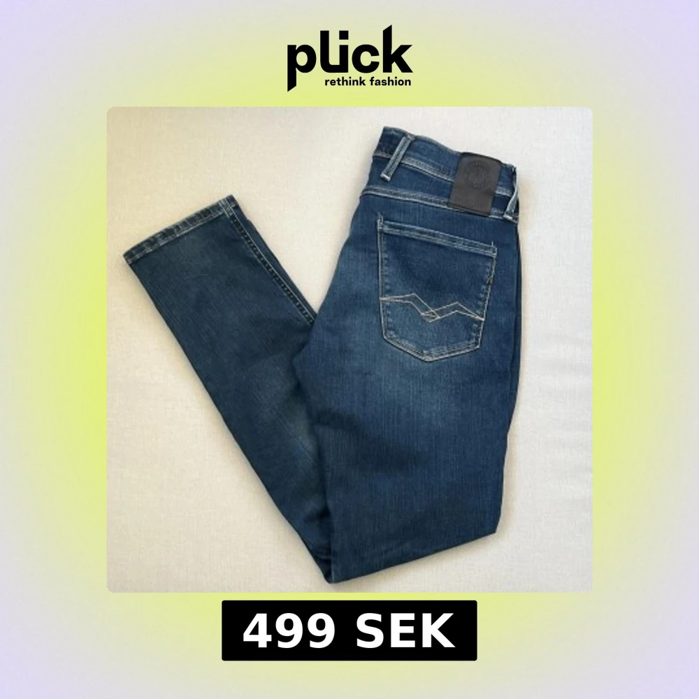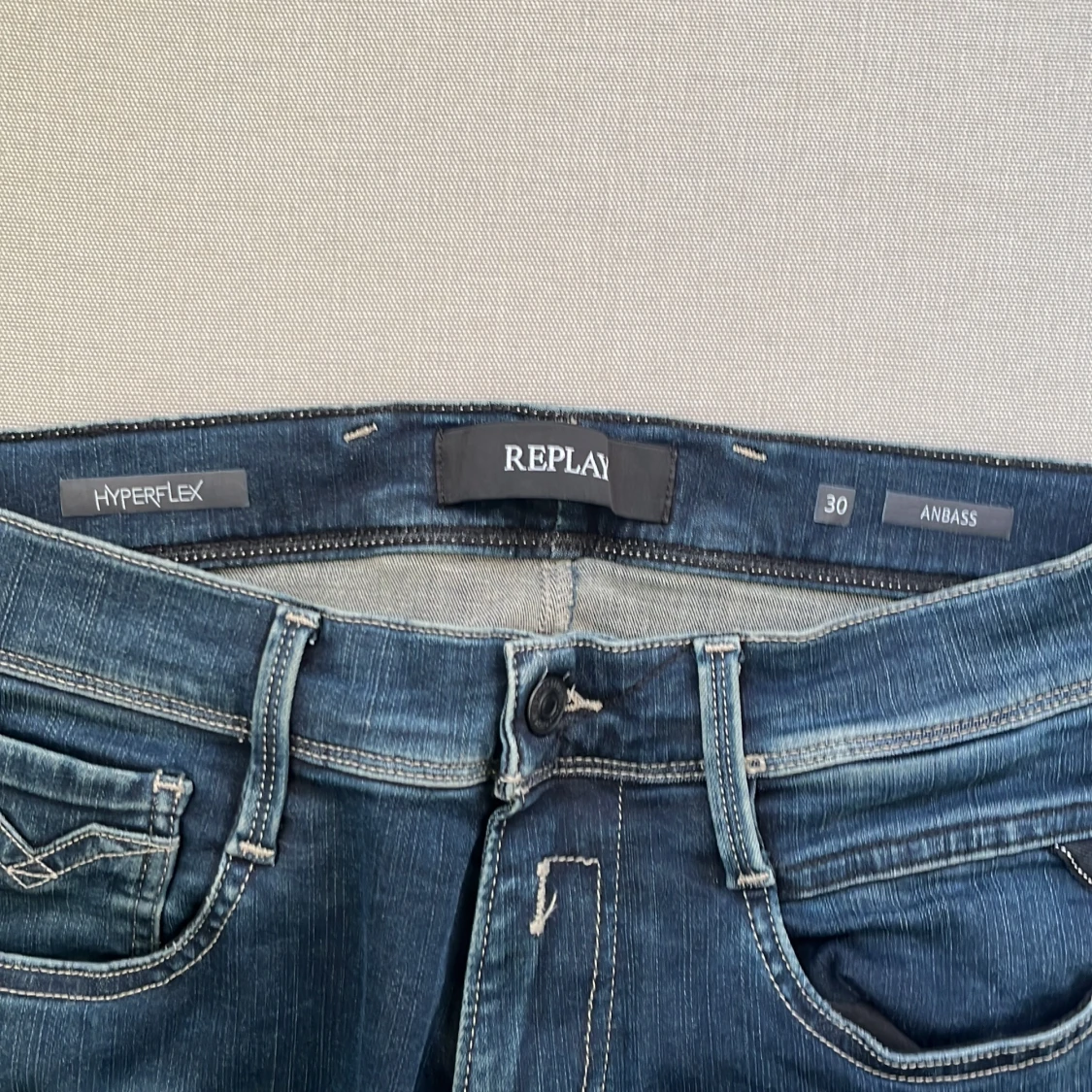 Snygga blå Replay Hyperflex Anbass jeans med klassisk femficksdesign och coola kontrastsömmar på bakfickan. Jeansen är i stretchigt denim som ger en skön passform och har en modern look med medelhög midja.