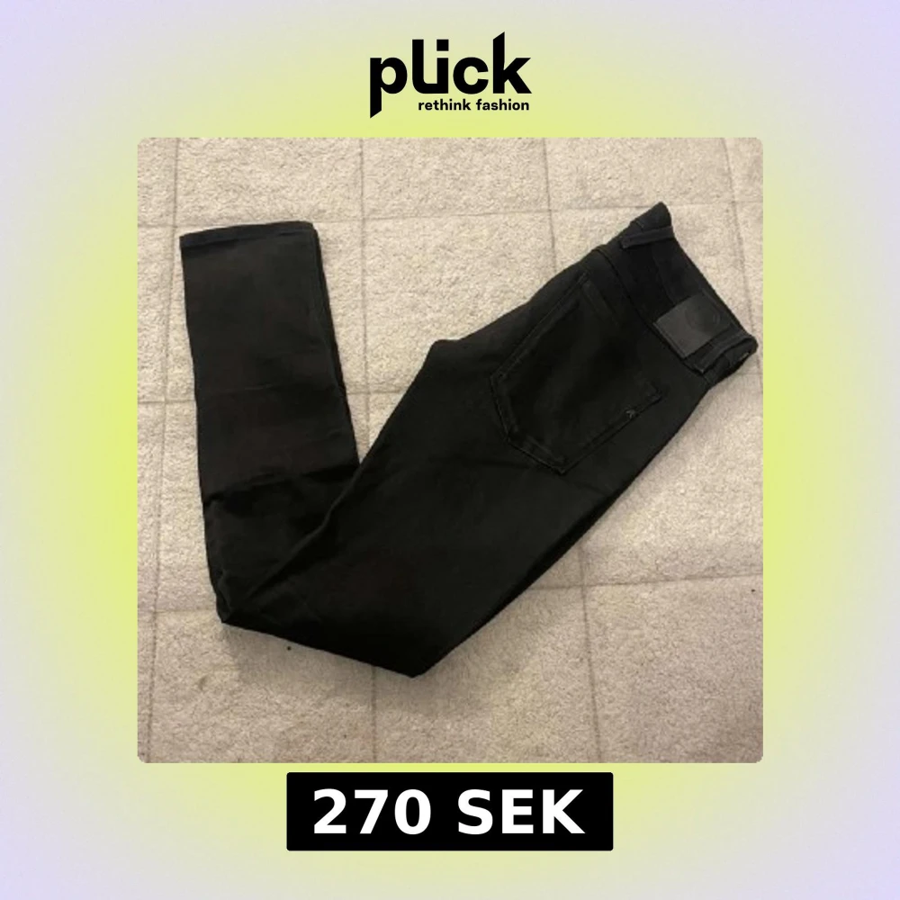 Säljer ett par svarta Replay Anbass jeans i storlek 31. De har en slim passform med klassisk femficksdesign och snyggt svart läderpatch bak. Jeansen är tillverkade i stretchigt bomullsmaterial för extra och sitter riktigt snyggt på.små i storlekarna