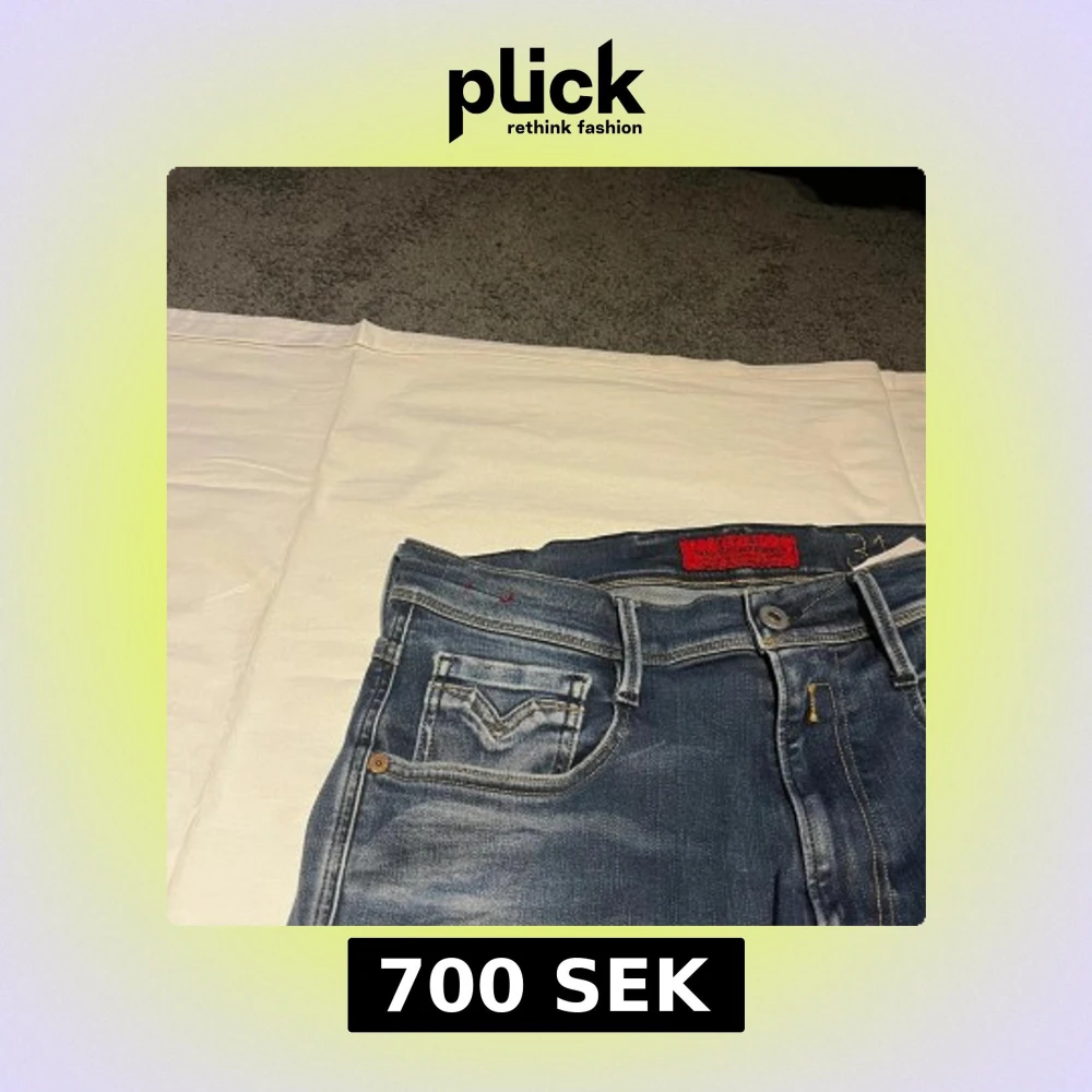 Snygga Replay Anbass jeans i klassisk blå tvätt med slitningar och kontrastsömmar. Modellen har fem fickor, normal passform och raka ben. Jeansen är tillverkade i bomull med en skön stretch för extra komfort. Perfekta för en avslappnad och trendig look.