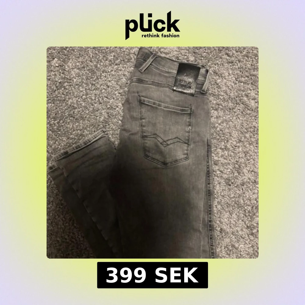 Snygga Replay Anbass jeans i en tvättad grå färg med klassisk femficksdesign, mycket bra skick men tyvärr har det blivit ett litet hål vid skrevet som ni kan se på sista bilden men inget som syns vid användning, hör av er vid frågor🤩