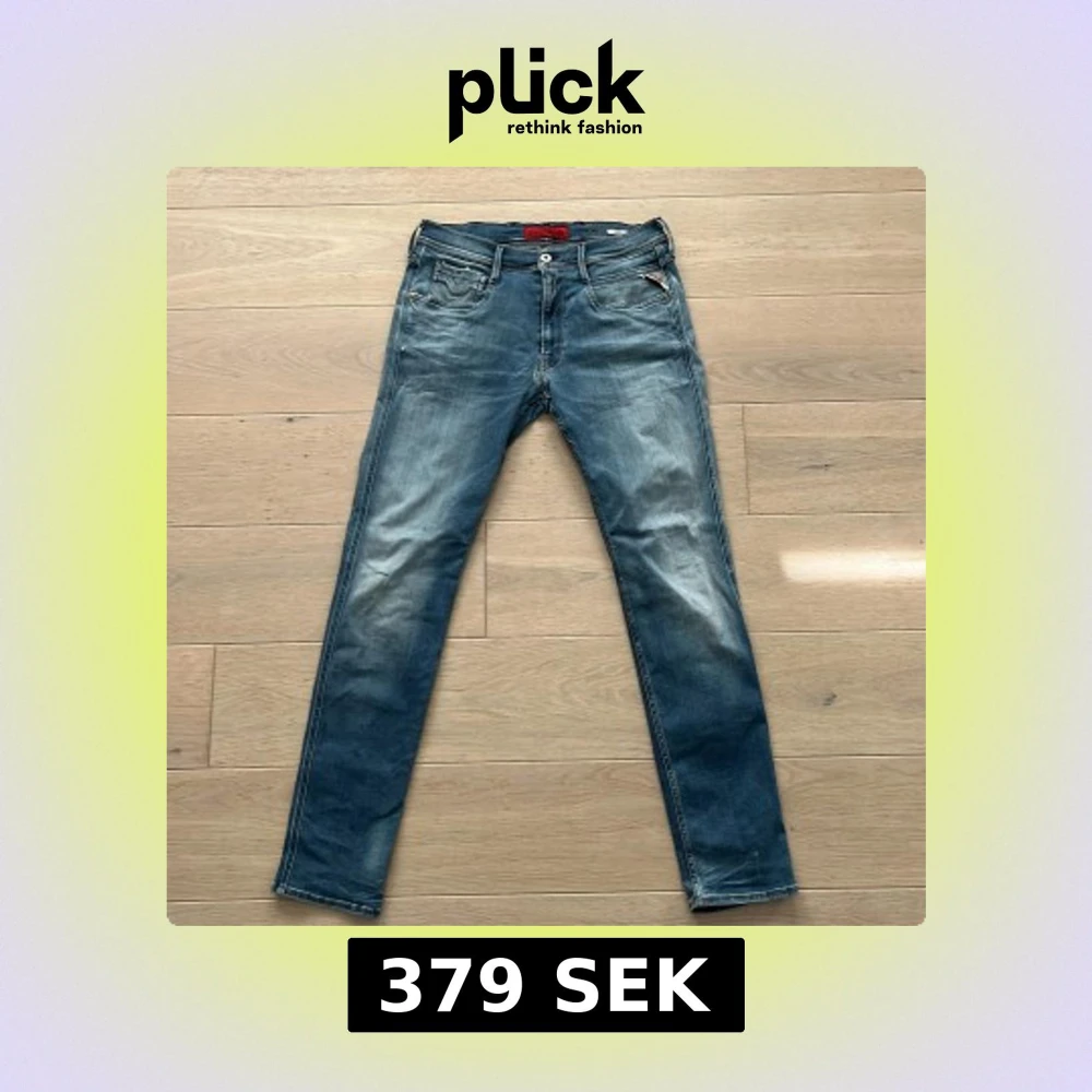 Snygga Replay Anbass jeans i blå tvätt med slitningar och klassiska fem fickor. Slim fit-modell med smalare ben och låg midja. Jeansen har detaljer som logopatch bak och dragkedja i gylfen. Perfekta för dig som gillar en modern och stilren look.