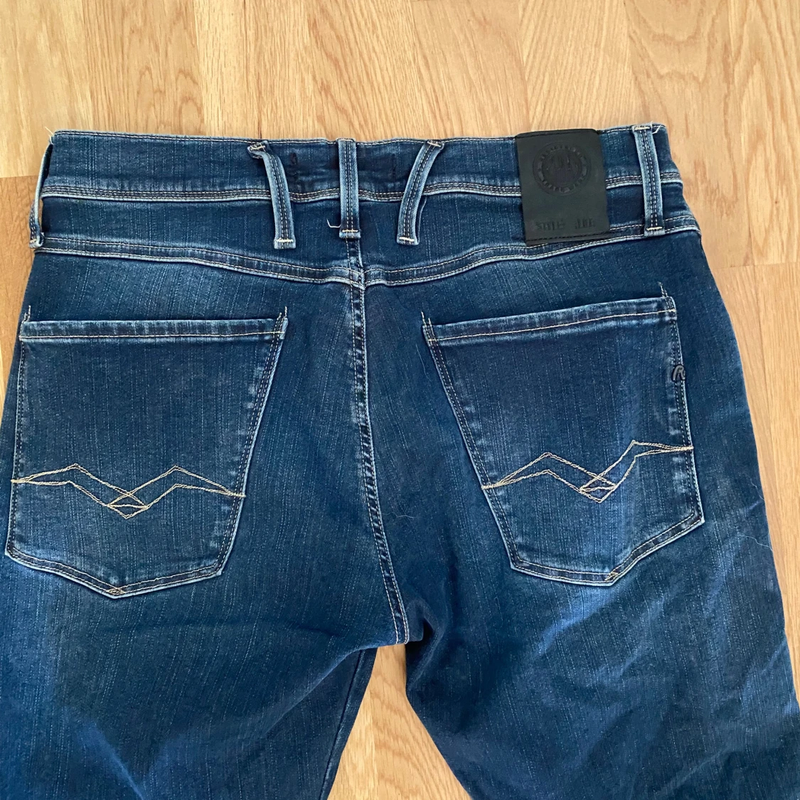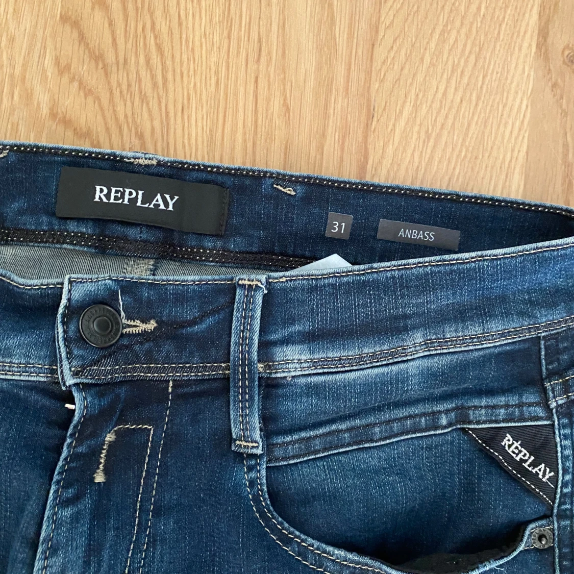 Snygga Replay Anbass jeans i mörkblå tvätt med slitningar och klassiska kontrastsömmar. Modellen har fem fickor, dragkedjegylf och broderade bakfickor med Replay-logga. Perfekta för dig som gillar en modern och stilren look.
