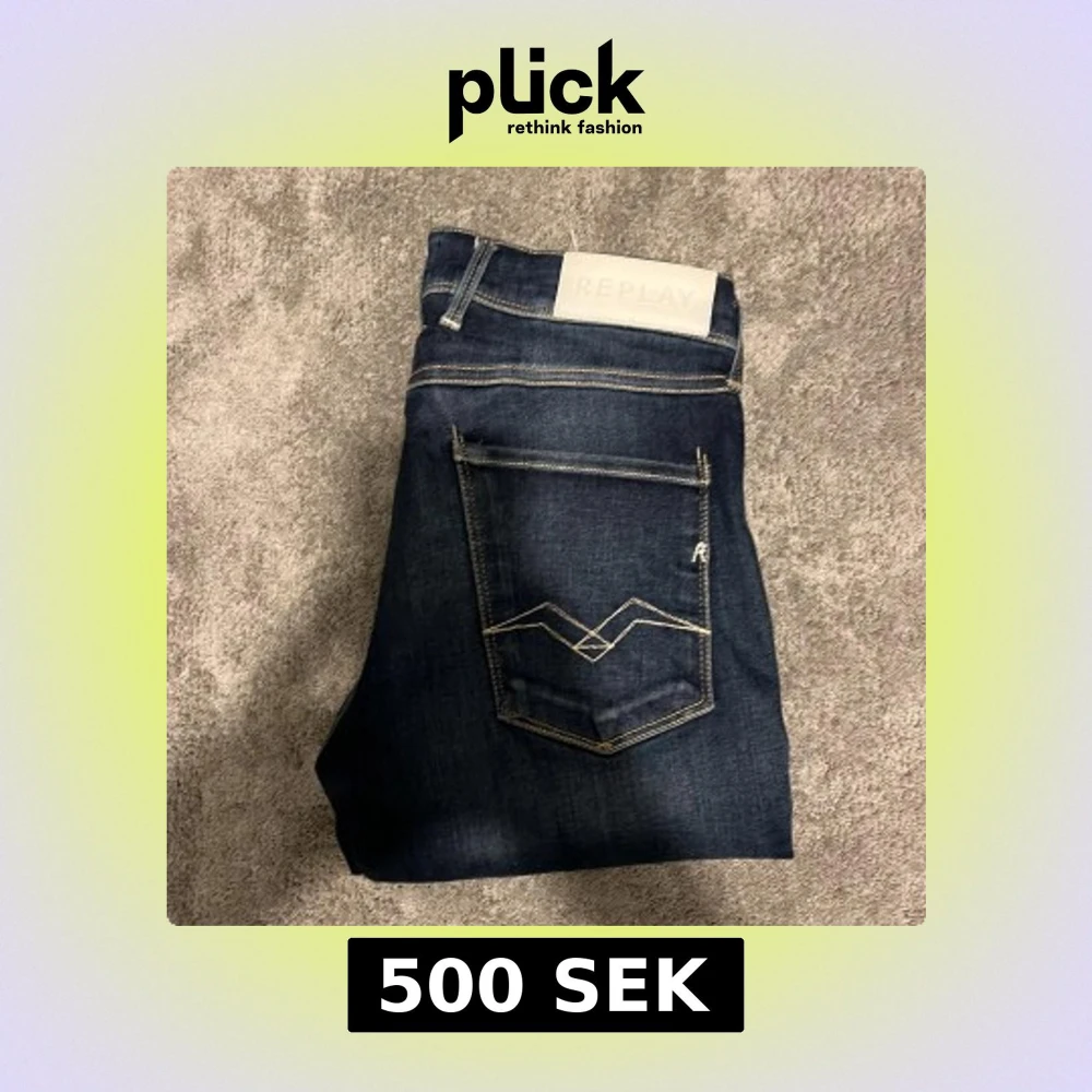 Snygga Replay Anbass jeans i mörkblå tvätt med kontrastsömmar och klassisk femficksdesign. Slim fit-modell med raka ben och detaljerad brodering på bakfickan.