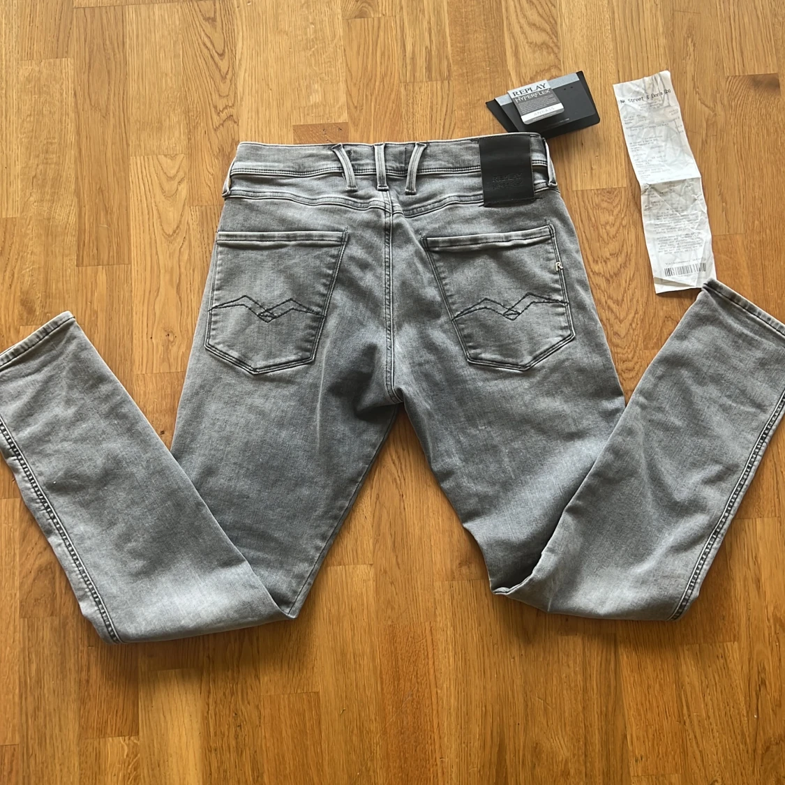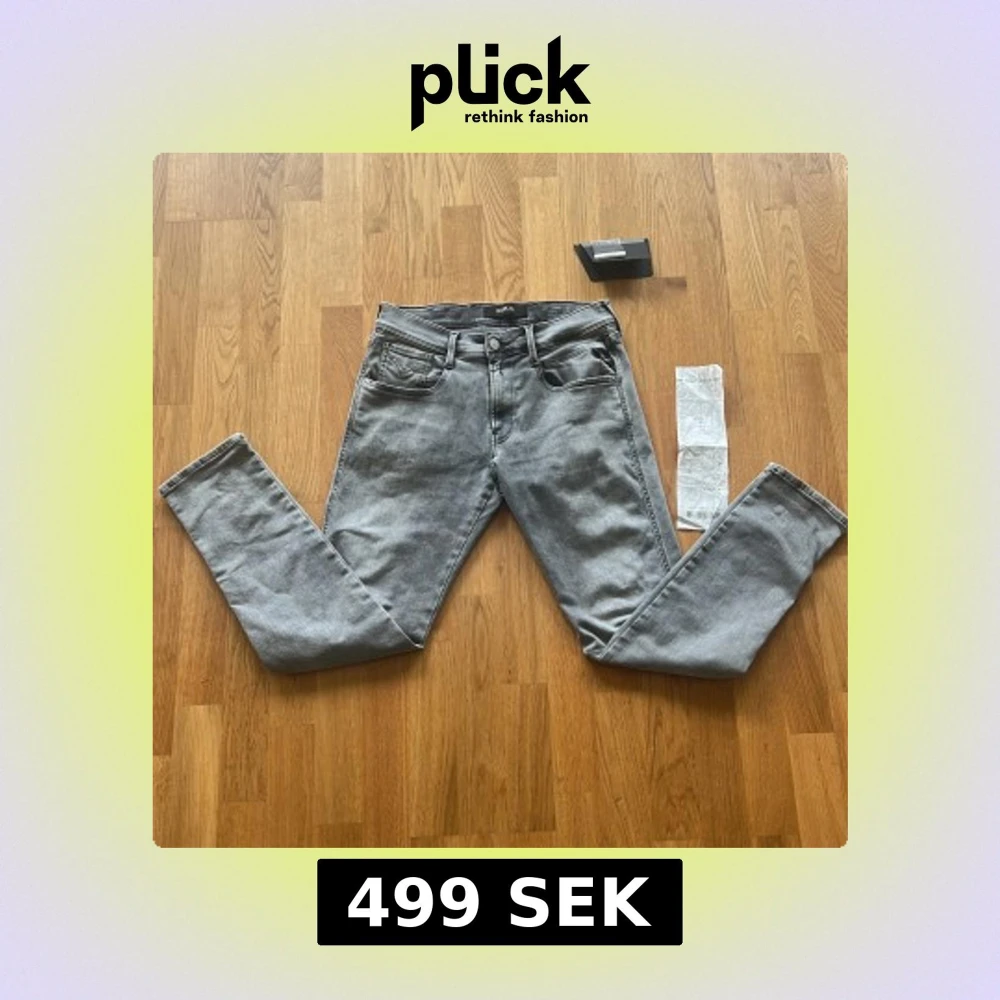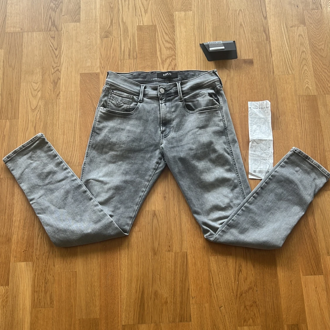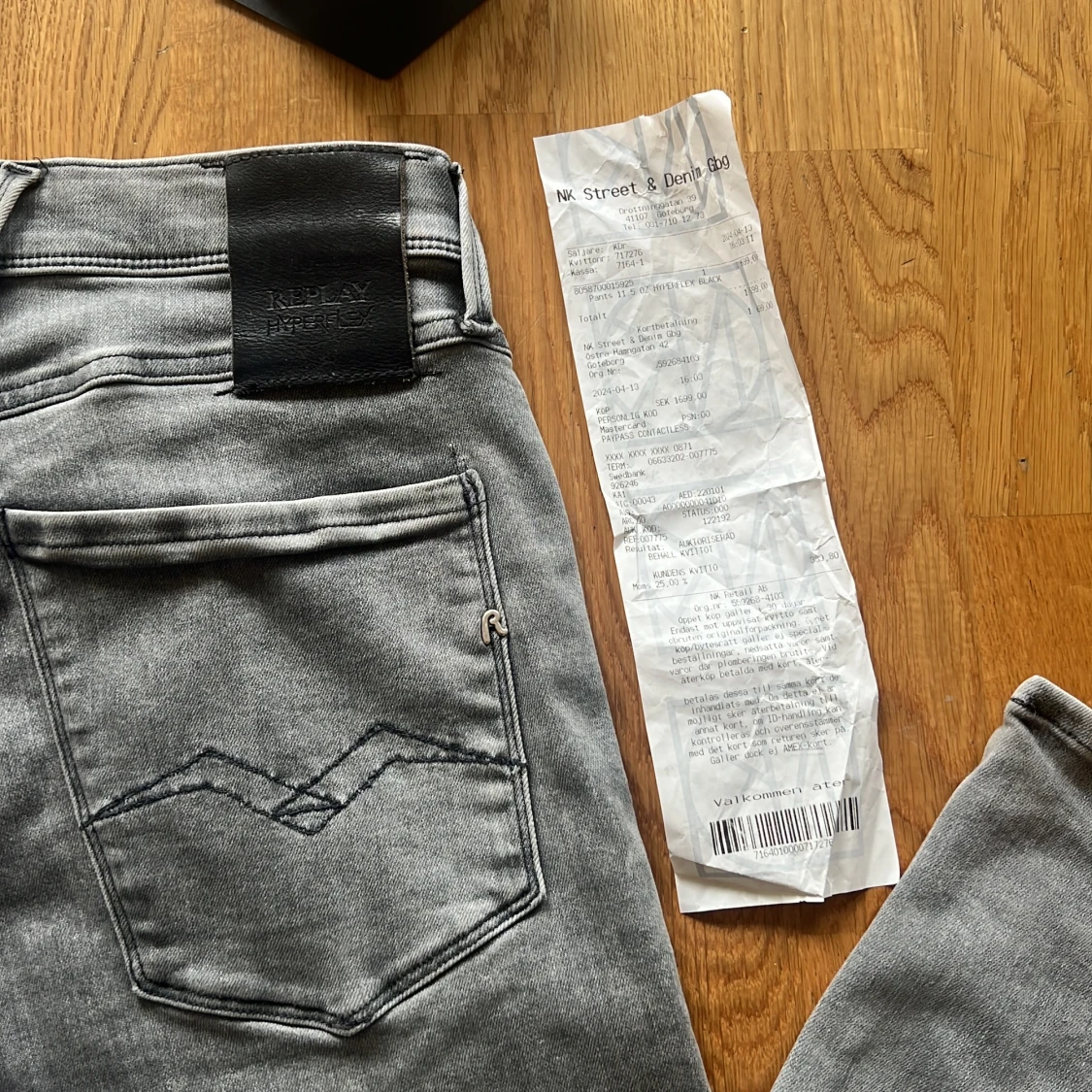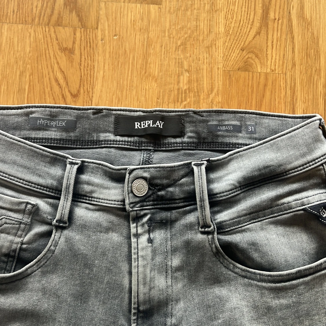 Säljer ett par Replay Hyperflex Anbass jeans i grå. Dom har inga defekter och har knappast använts. Köpte från nk för 1699kr säljer nu för 399! Dom är size 31/30. Skriv på för frågor!